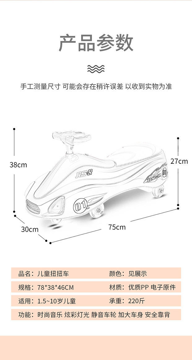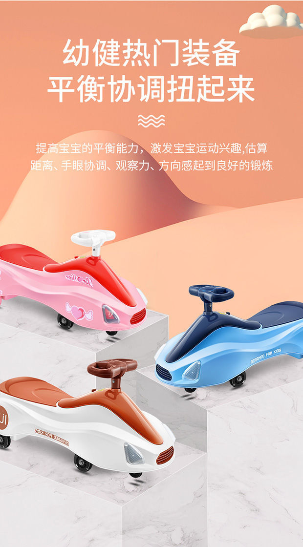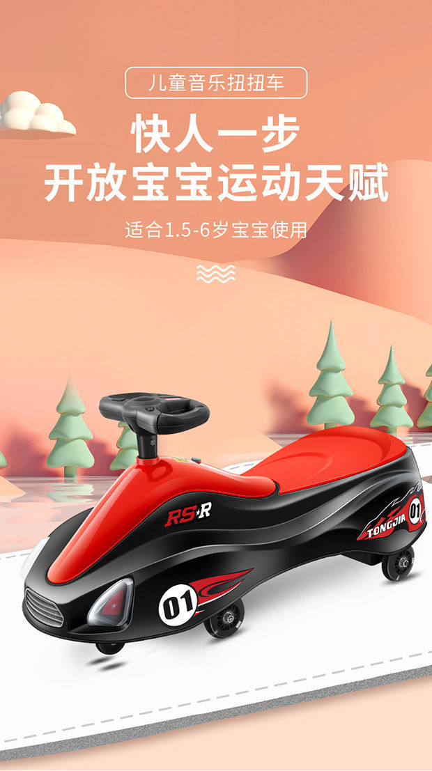 Swing Car Children Luge with Music Light Silent Wheel under 14 Years Old Scooter 1-7 Years Old Baby Walker Shake