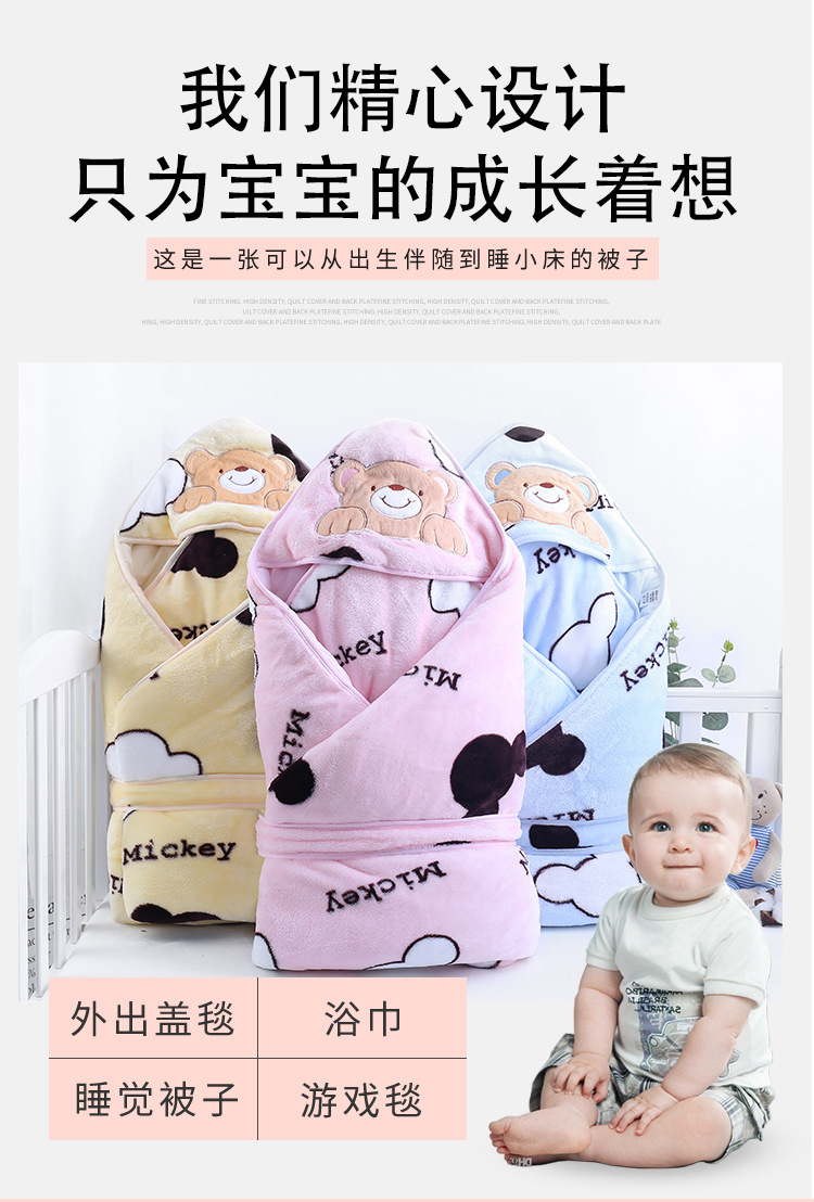 Baby Baby's Blanket Cotton Autumn and Winter Thick Fleece-Lined Hug Blanket Baby Sleeping Bag Summer Four Seasons Universal