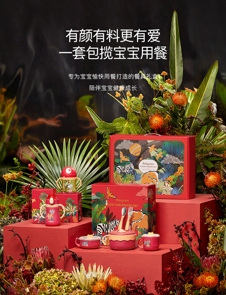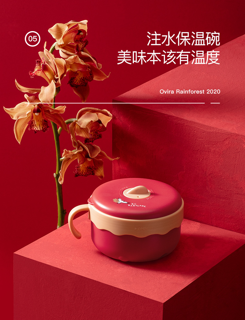 Babycare Baby Tableware Gift Box Children's Thermos Mug No-Spill Cup Solid Food Bowl Water Injection Thermal Insulation Bowl 7-Piece Set