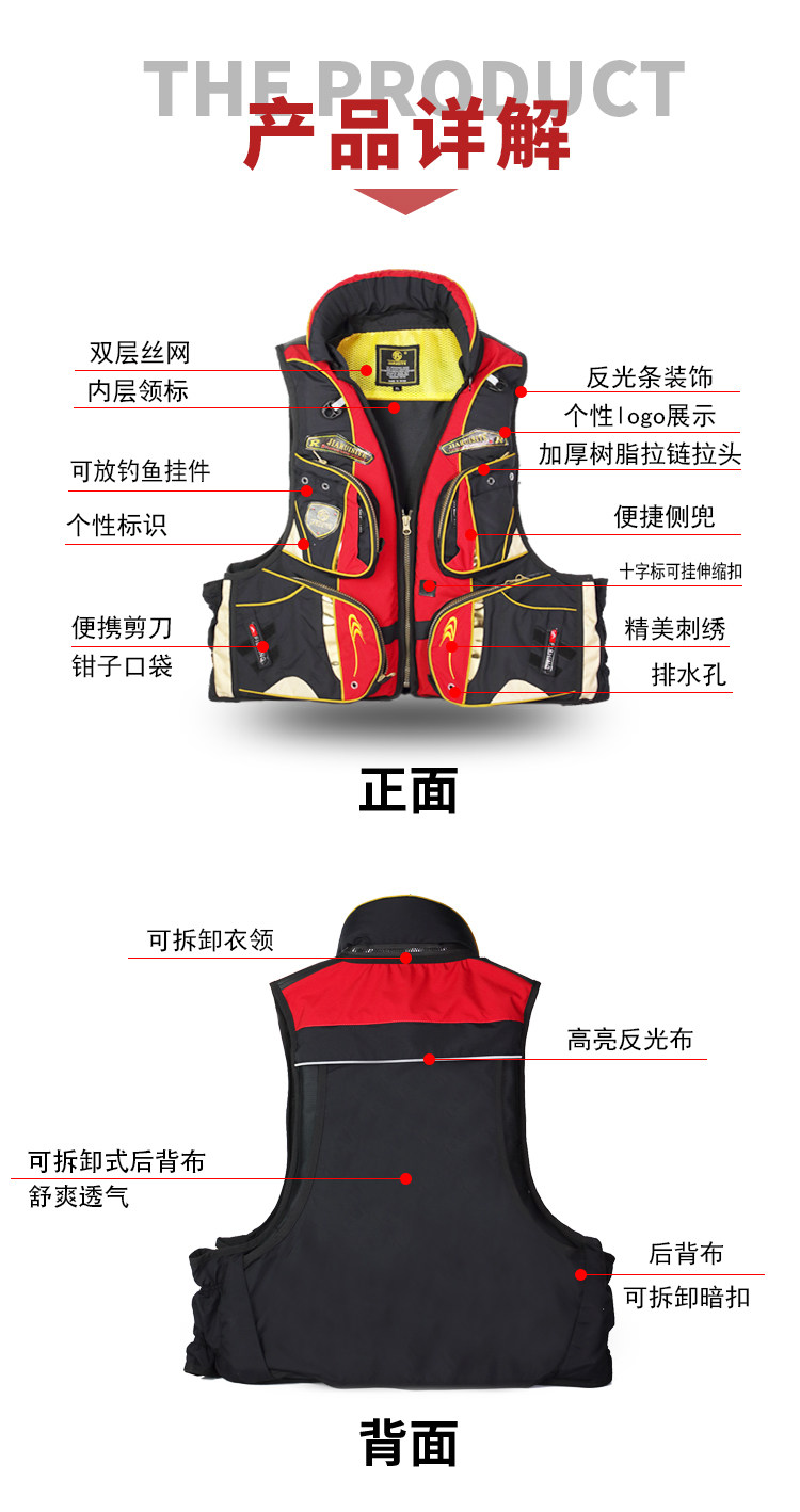 Large Buoyancy Professional Adult Fishing Swimming Marine Sea Fishing Multi-Pocket Detachable Life Jacket for Four Seasons