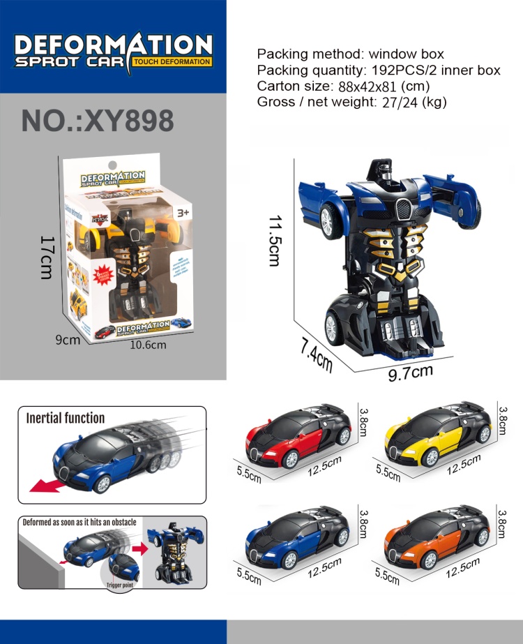 inertia deformation bujia racing car 4-color mixed inertia one-click deformation inertia toy online celebrity new