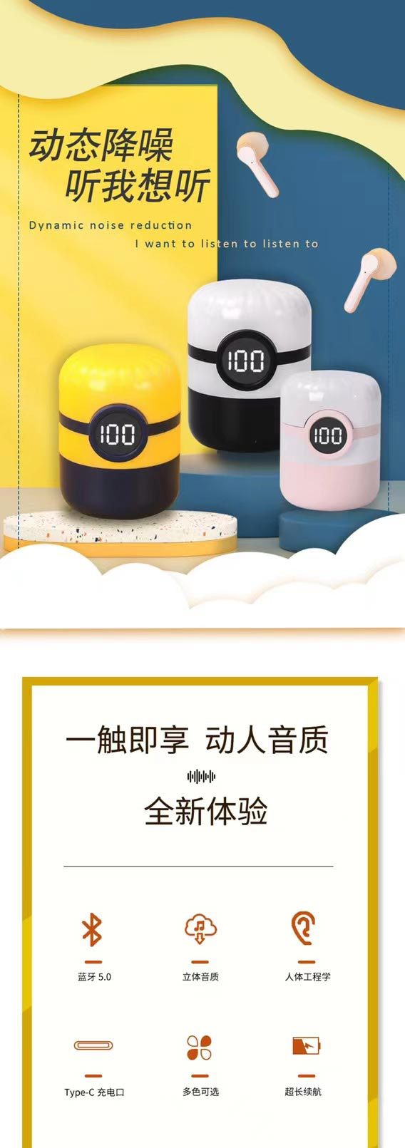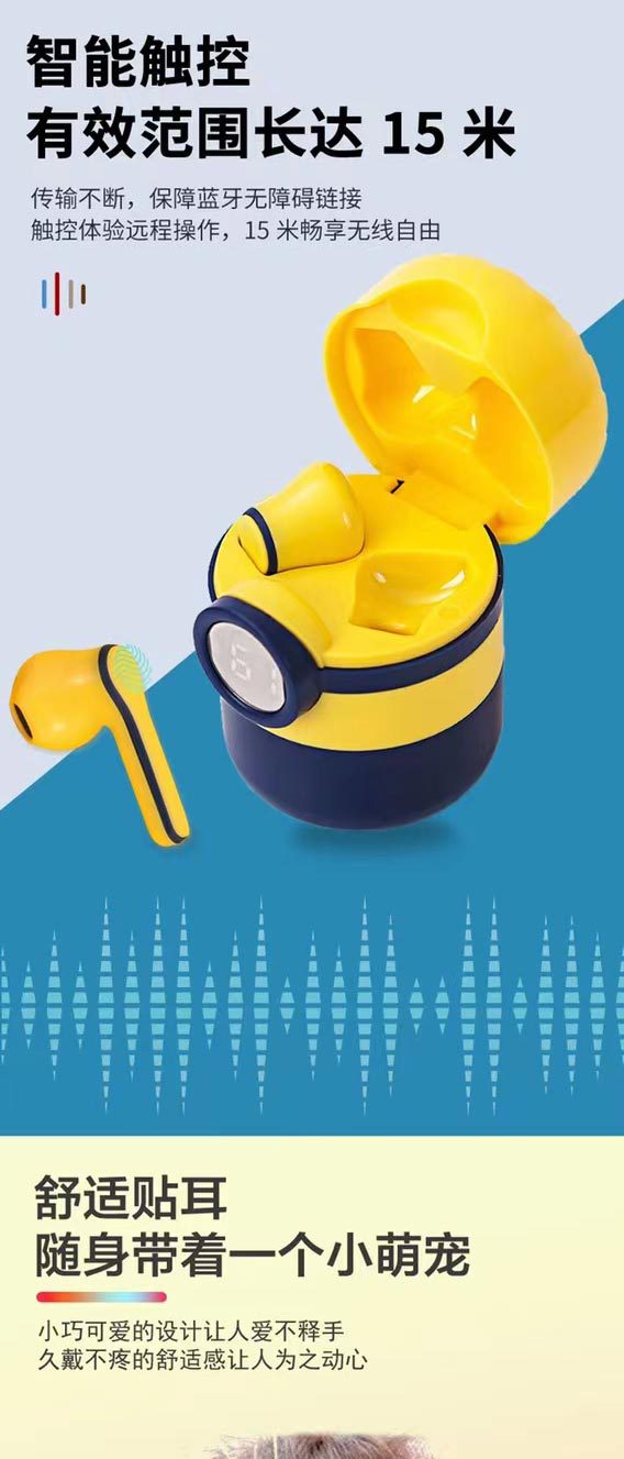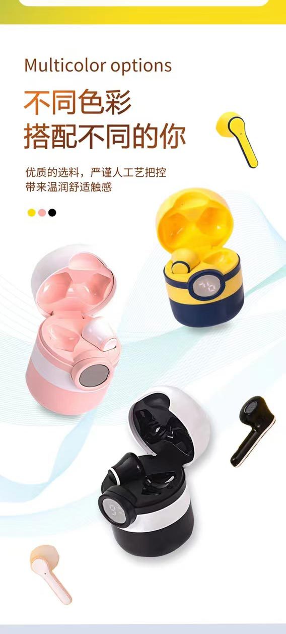 Cross-Border Amazon New Private Model Pro12 Small Yellow Cartoon Wireless Bluetooth Sports Stereo Digital Display Headset