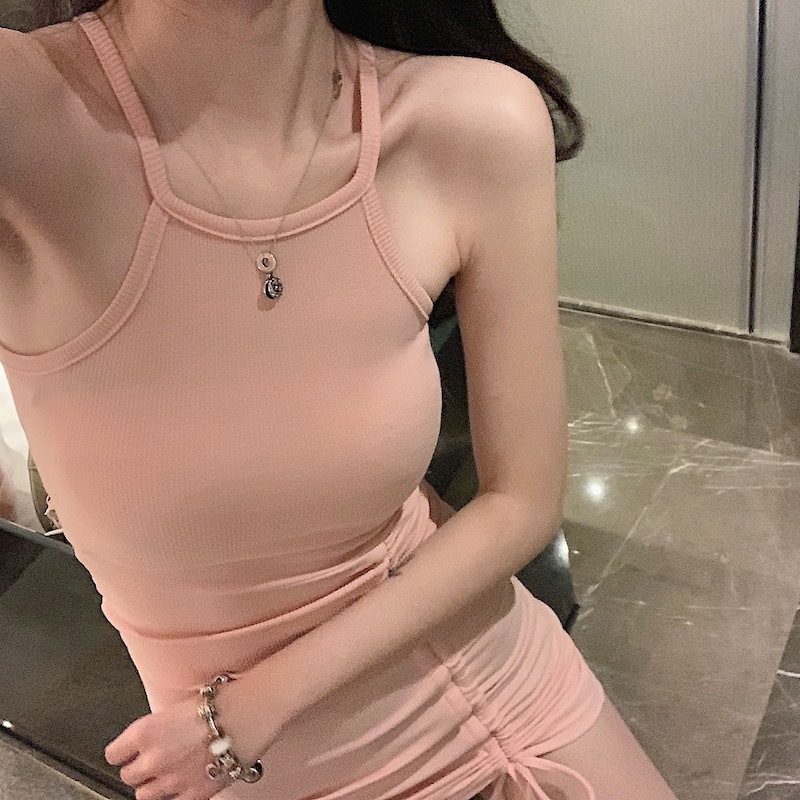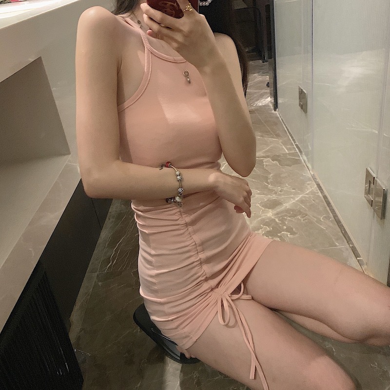 2022 Summer Tight Sexy Halter off-the-Shoulder Dress Drawstring Slim-Fit Suspender Skirt Irregular Hip Skirt