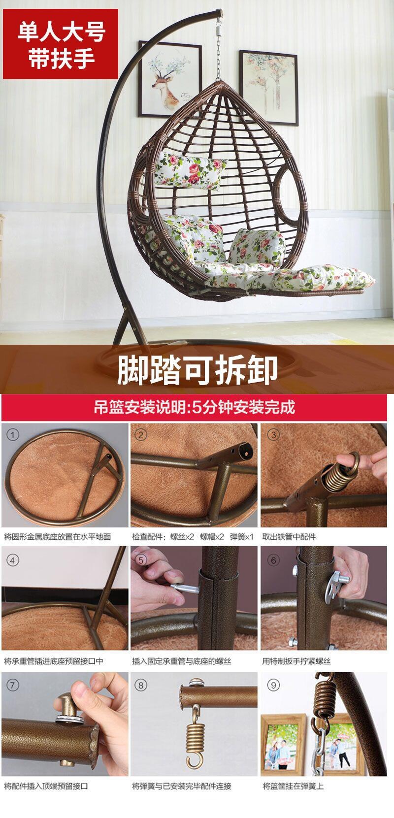 Hanging Basket Rattan Chair Nest Chair Subnet Red Rocking Chair Blue Discharge Swing Home Hammock Indoor Balcony Cradle Chair Glider