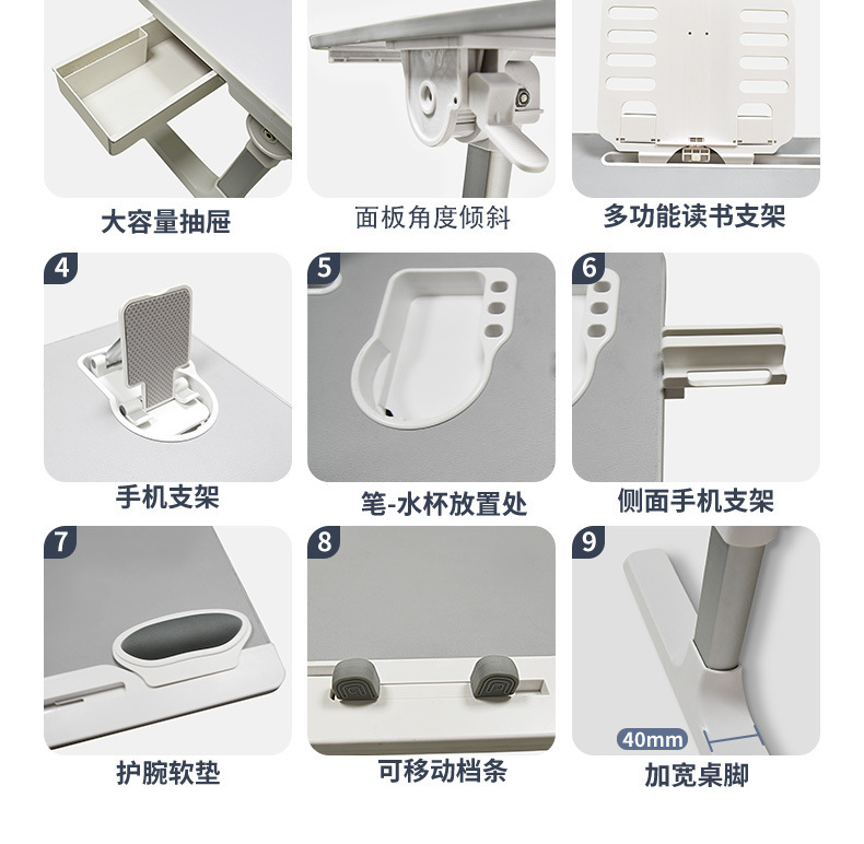 4. Five-gear height, adjustable panel angle.