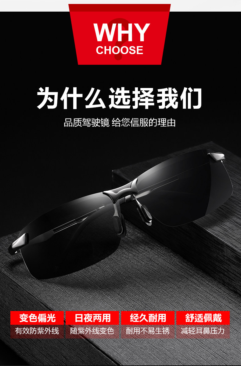 Polarized Sunglasses Men's for Driving Eyes Drivers Glasses for Driving Tide Fishing Day and Night Dual-Use Discolored Sunglasses