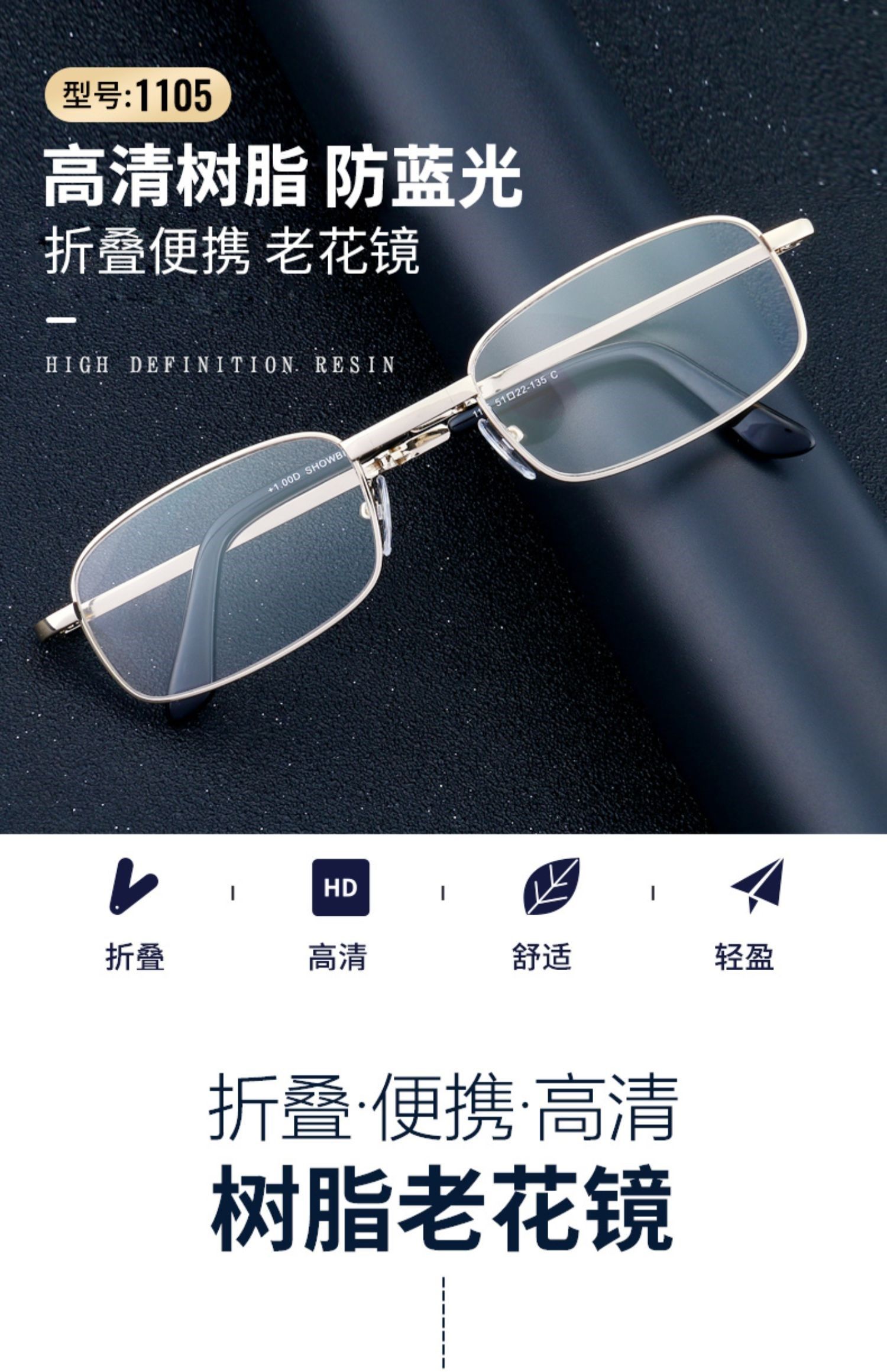 Men's and Women's Fashion and Ultra Light Folding Portable Anti-HD Resin Anti-Scratch Presbyopic Presbyopic Glasses
