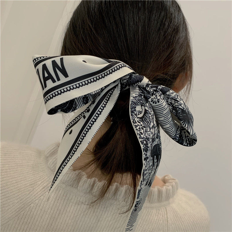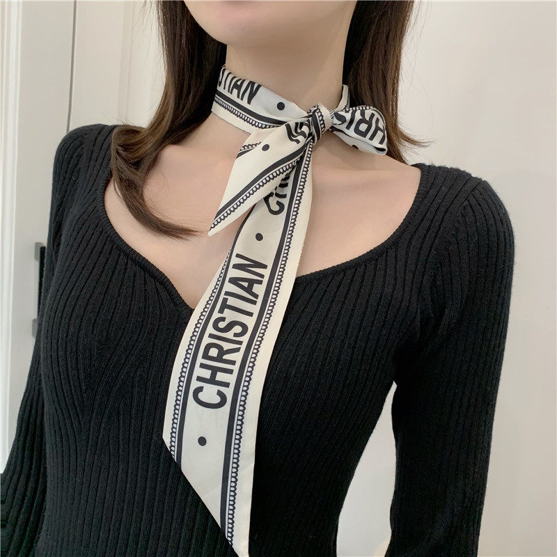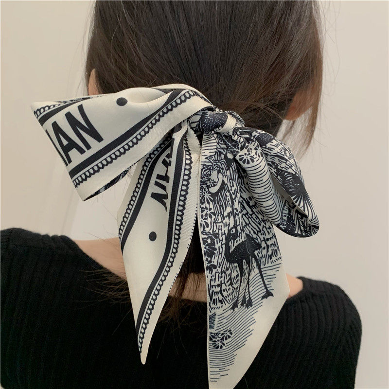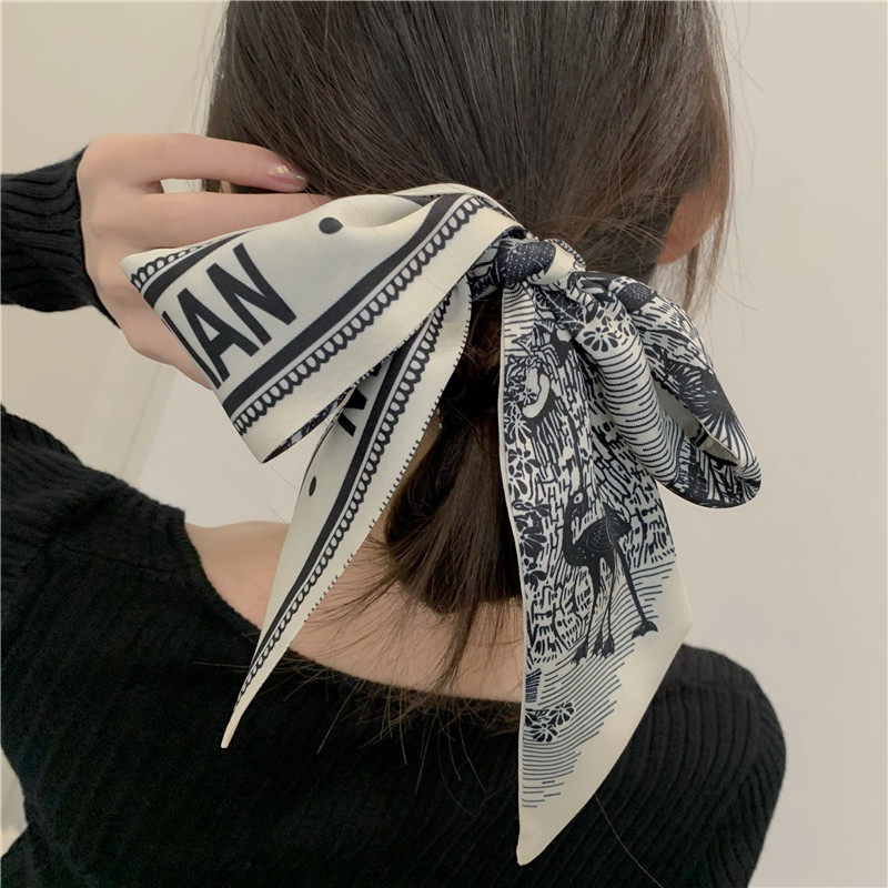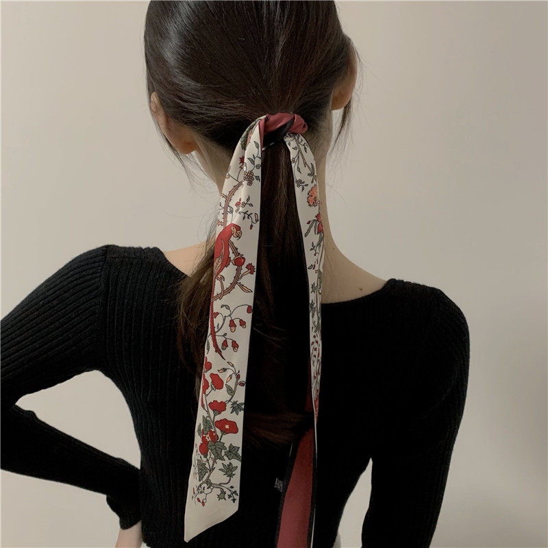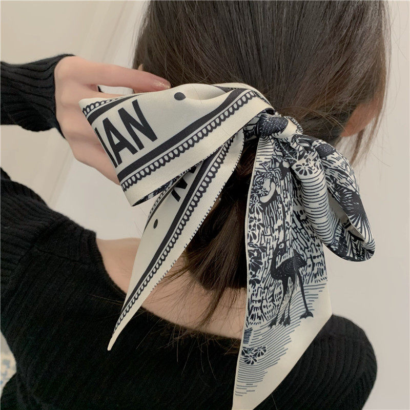 Hair Band Hair Tie Scarf Vintage Outer Band French Scarf Small Long Narrow Thin Scarf Ins Tie Tie-up Hair Ribbon