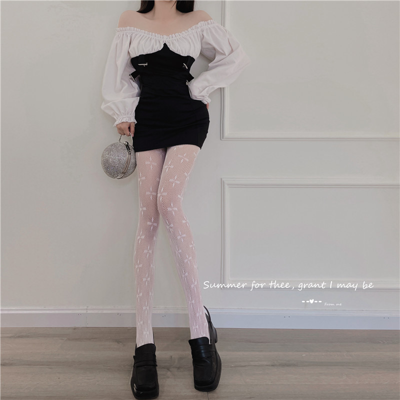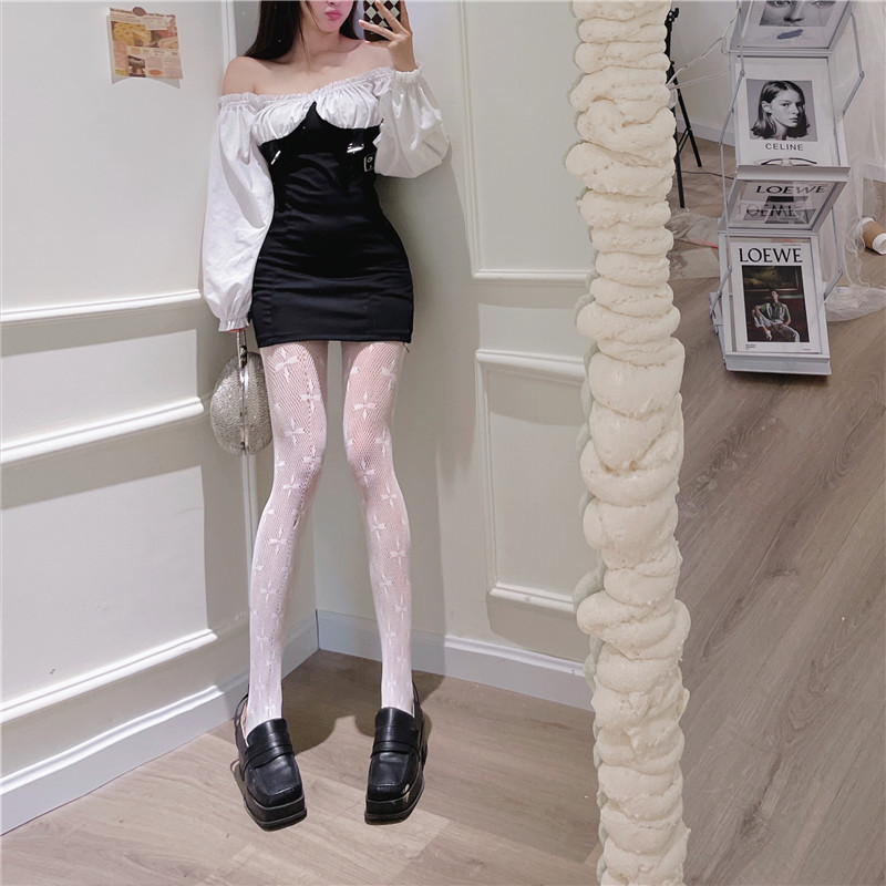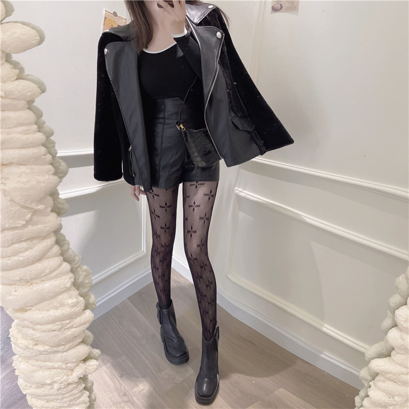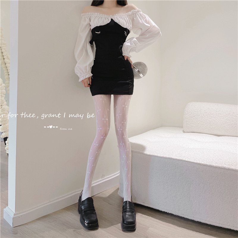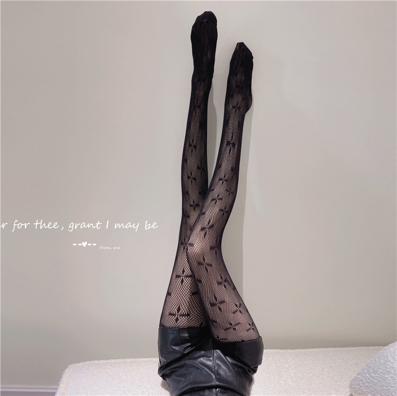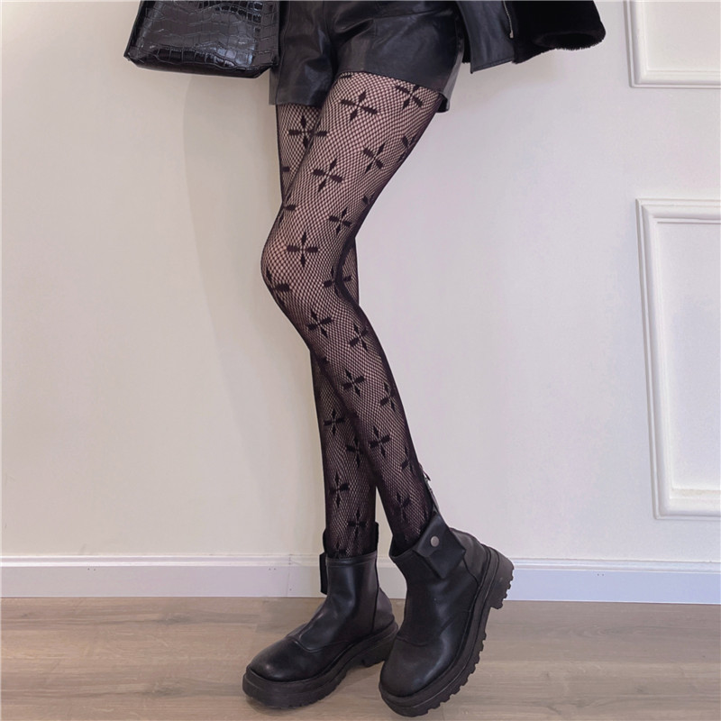 Four-Leaf Clover Fish Mesh Stockings Black Silk Hot Girl Wear Pantyhose Women's Spring and Autumn Black Stockings Fashion Net Red Garden Mesh Stockings