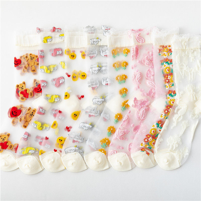 Summer Thin Kanekalon Crystal Silk Bear Cute Korean Dongdaemun Stockings
