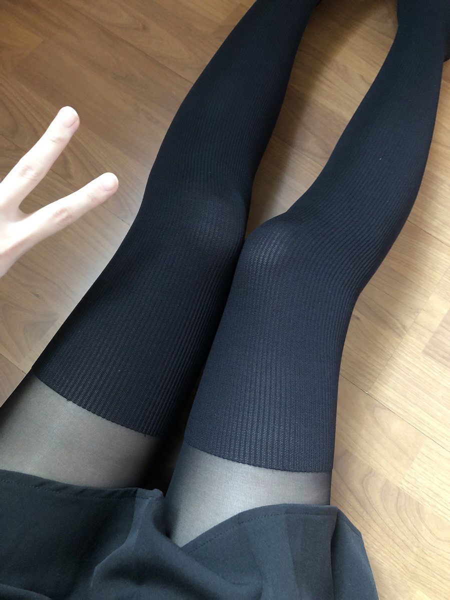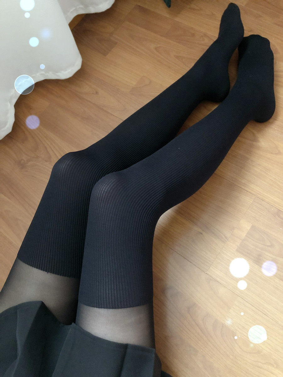 Black level T butterfly spandex elastic stockings with a thickness of 20D and 60D below. The design of splicing fake over knee has a slimming effect with micro pressure.