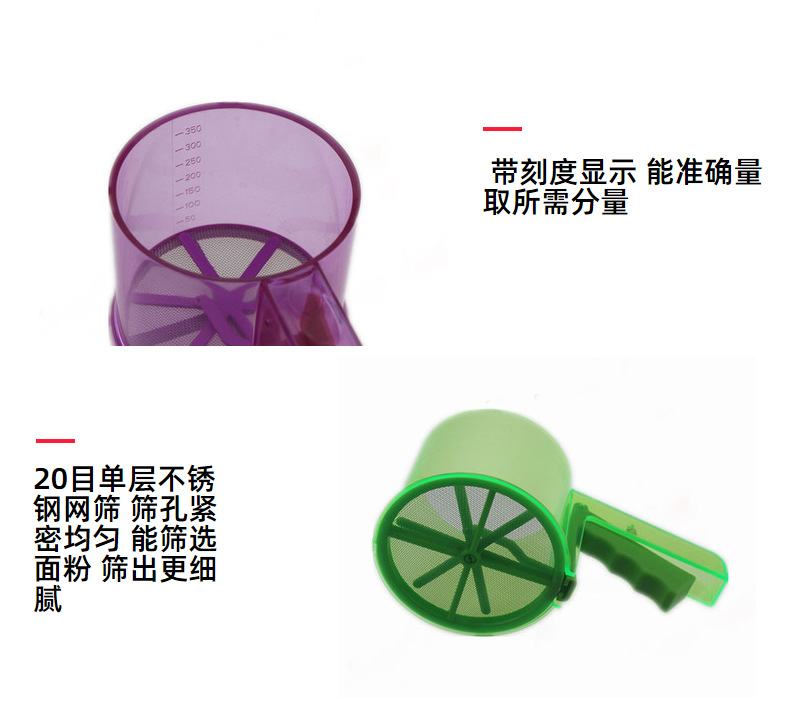 Flour Sifter Powdered Sugar Filter Handheld Cup Strainer Fine Screen Plastic Manual Flour Sifter Baking Tool