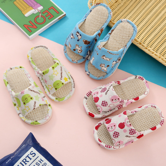 Four Seasons Children Household Slippers Indoor Spring And Summer Autumn Thick Bottom Household Boys' And Girls' Bedroom Floor Linen Slippers