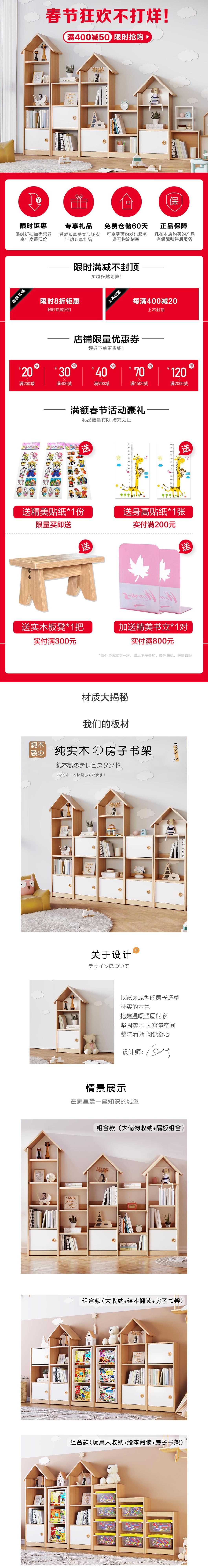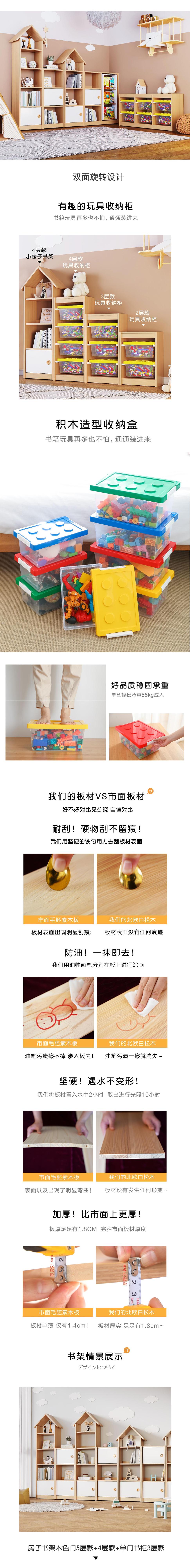 Solid Wood Children's Bookcase Home Floor Bookcase Shelf Creative Small House Bookshelf Combination Kindergarten Picture Book Rack