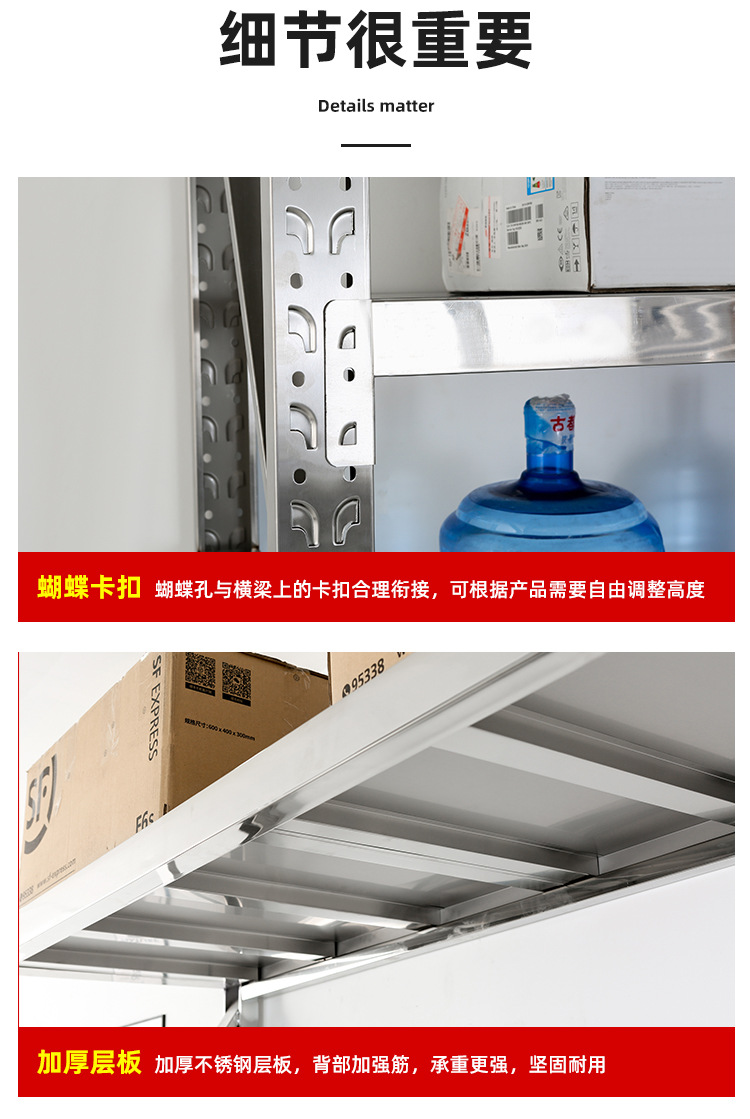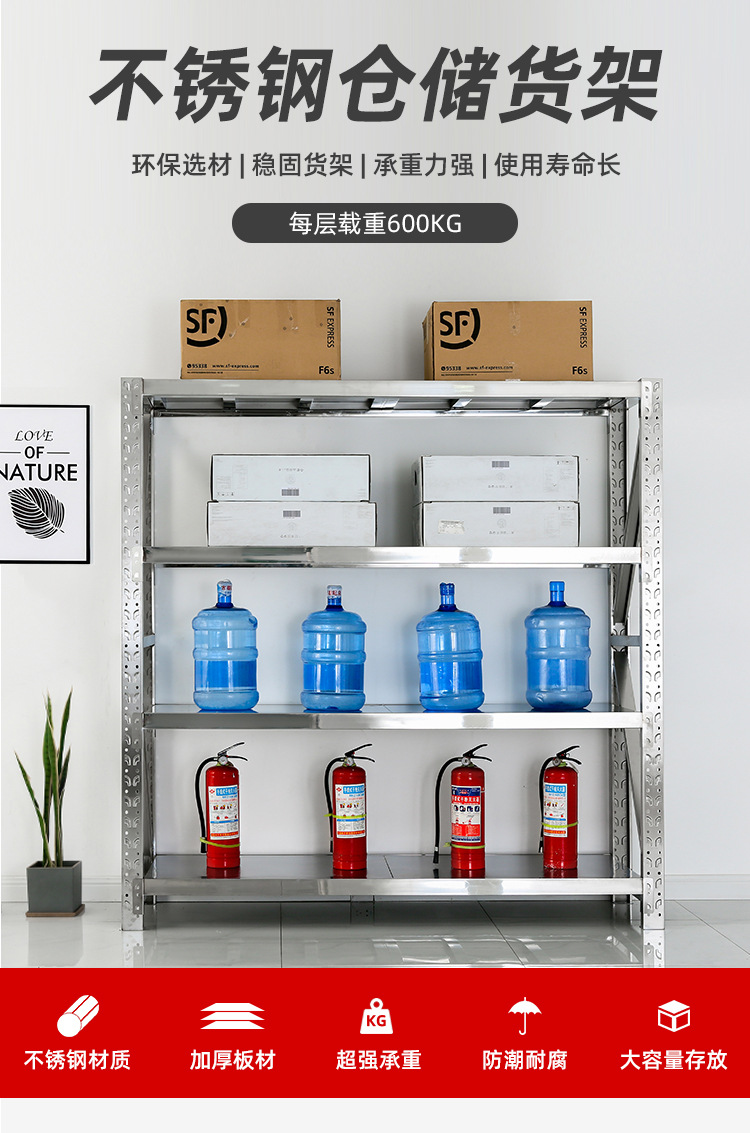304 Stainless Steel Storage Shelf Multi-Layer Display Shelf Warehouse Kitchen Cold Storage Basement Heavy-Duty Storage Rack Commercial Use