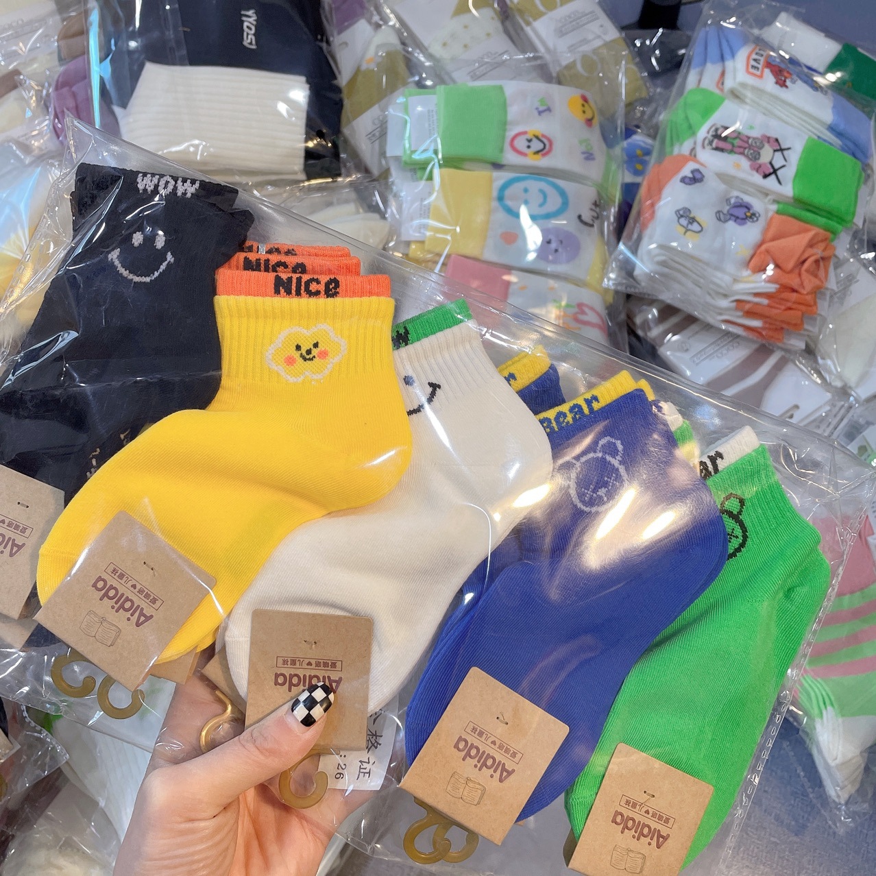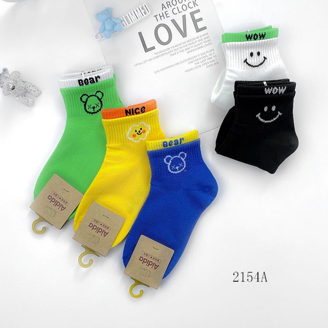 Aidida Kid's Socks Spring New Ins Combed Cotton Double Screw Type Smiley Face Boys and Girls 1-15 Years Old Street Trendy Socks