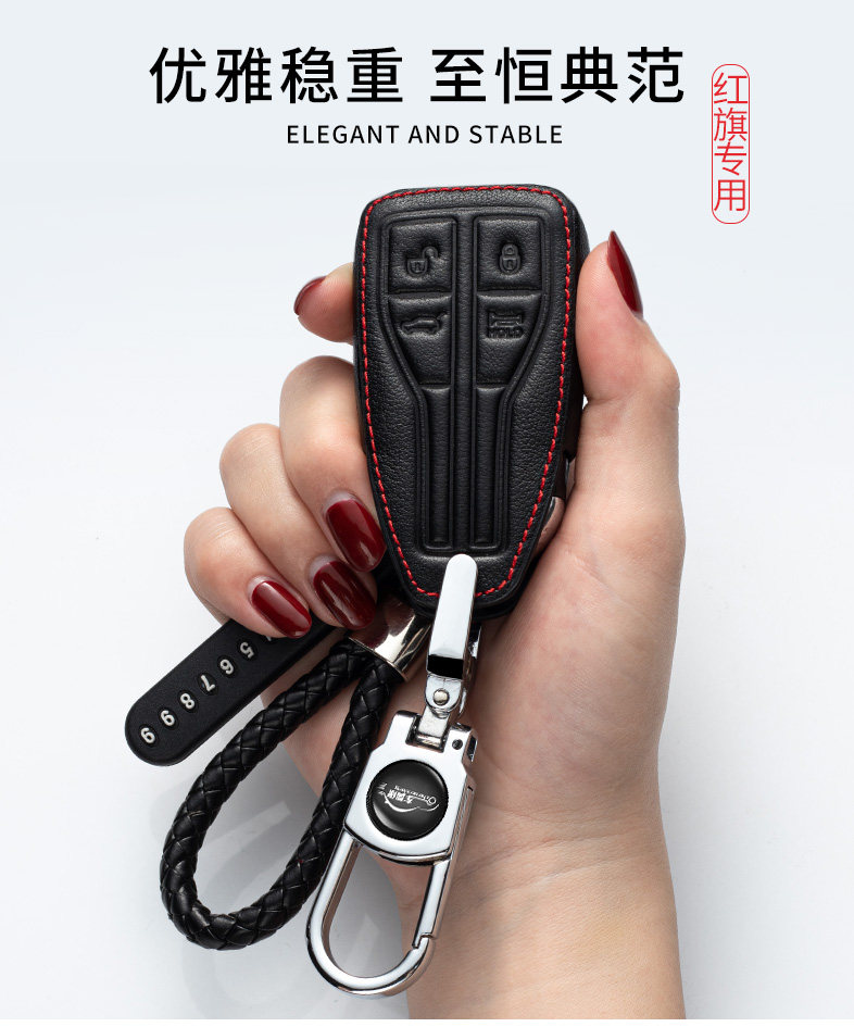 Applicable Red Flag HS5 Key Case/Red Flag H7 Key Cover H5/HS7 FAW Hongqi Key Cover Genuine Leather Key Bag