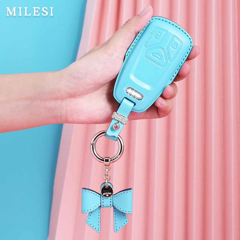 suitable for Audi A4L Q3 Q5 Q7 bow car leather key cover female Diamond protective key case and keychain bag