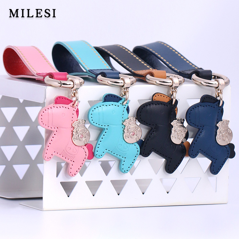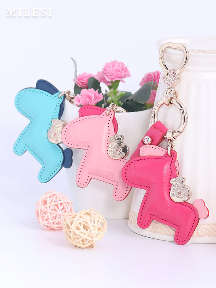 pony cowhide car key ring Women's genuine leather soon rich exquisite mini key chain handbag pendant couple
