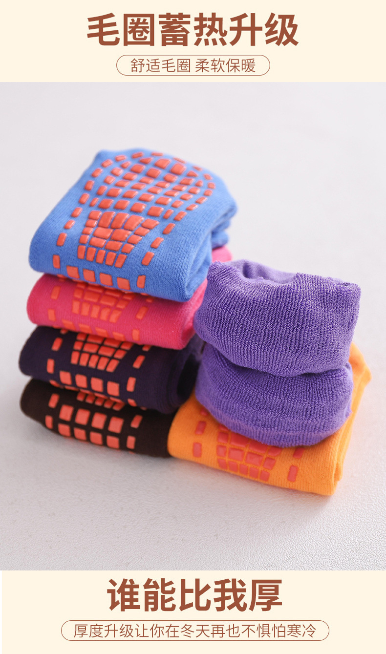 Fleece-Lined Thickened Cotton Trampoline Socks Indoor Floor Foot Sock Adult and Children Mid-Calf Non-Slip Socks Autumn and Winter Early Education Socks