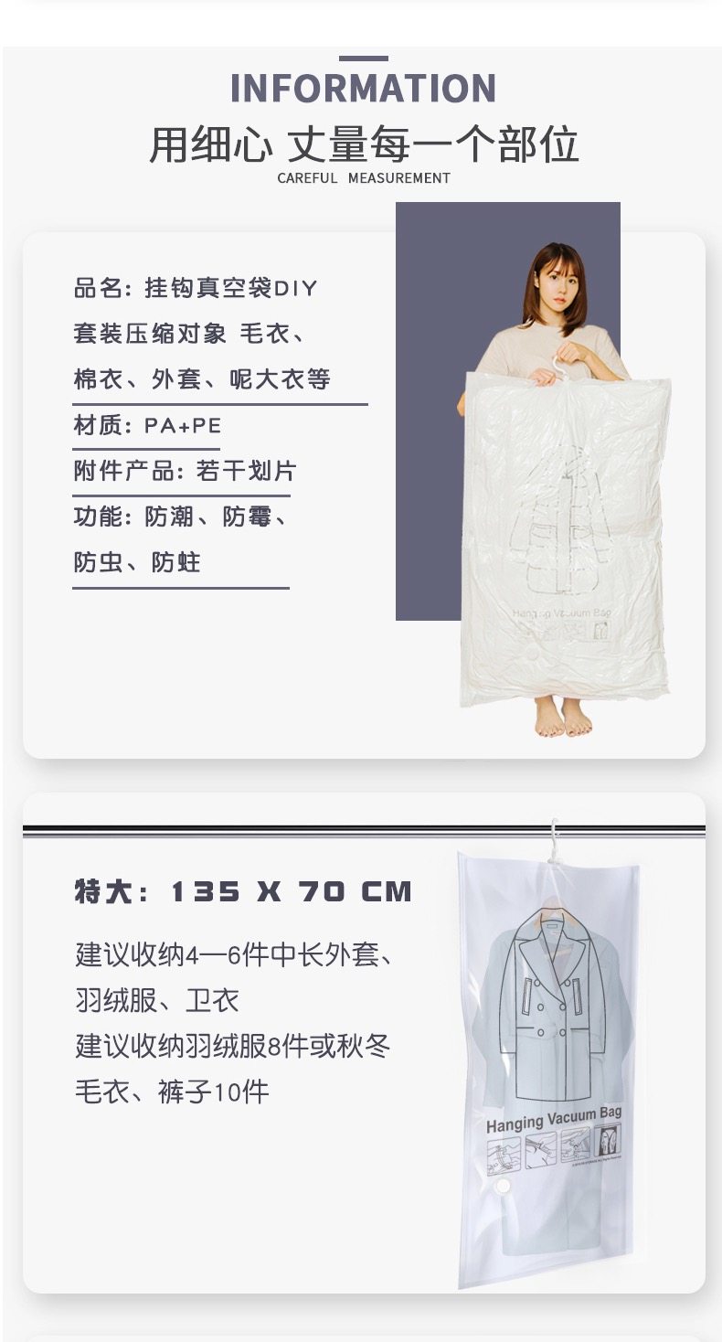 Vacuum Compression Bag with Hooks Coat down Jacket Buggy Bag Bedroom Cloakroom Wardrobe Organizing Folders Dust Cover