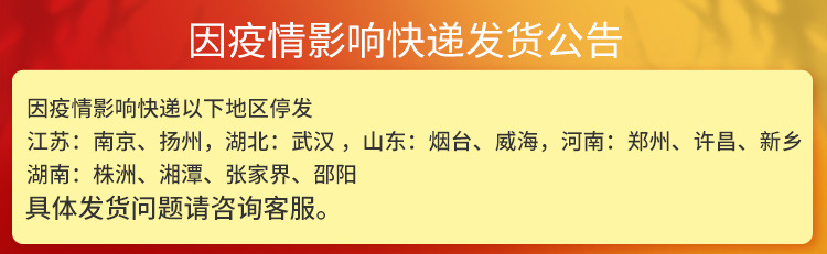 Dear new and old customers: due to the epidemic or the annual express online store holiday, the following areas cannot be shipped. Please contact Customer Service to confirm the payment before placing an order: Xinjiang, Shaanxi, Tianjin, and Beijing are suspended; Yunnan, Henan (Luoyang, Yuzhou, zhengzhou, Anyang, Zhangjiakou-the whole territory), Guangdong (Longgang District, Shenzhen, Nanping Town, Luohu District, Futian District, Shenzhen), Huairen city, Guizhou, the whole territory of Yichun city of Heilongjiang province