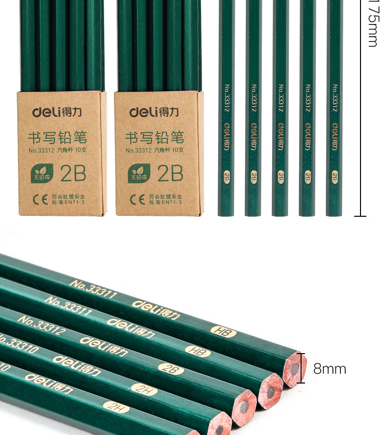 Deli 2b2hhb Primary School Student Writing Pencil Children Kindergarten Sketch Student Exam Sheet Filling Pencil 10 Pack