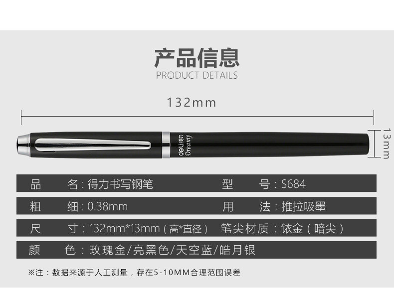 Deli S684 Student Pen Primary and Secondary School Student Office Signature Pen Dark Nib Iridium Gold Pen Metal Calligraphy Practice Pen