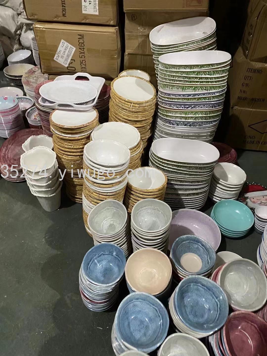 factory direct sales melamine leftover stock large number plate bowl tray cup fruit plate tureen sold by ton