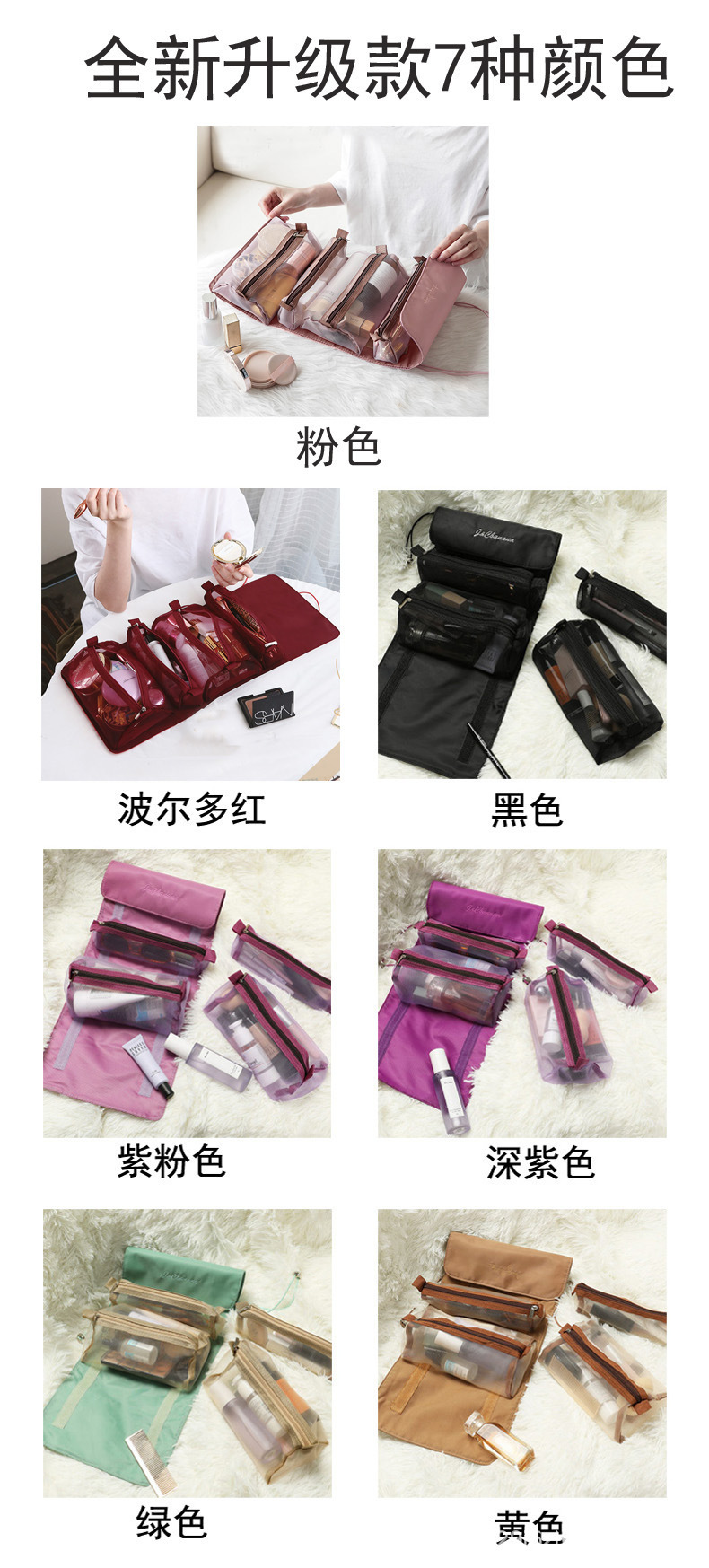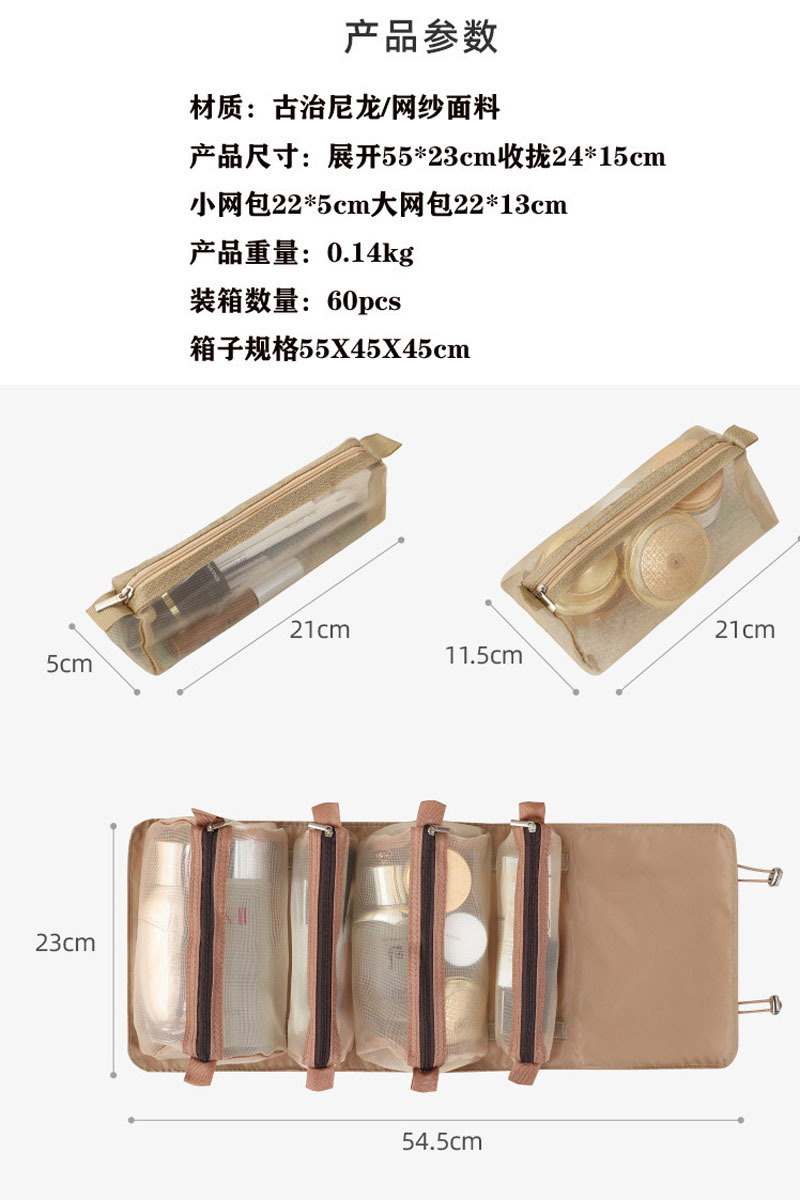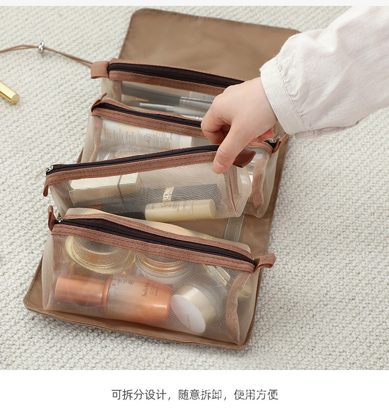 Large Capacity Four-in-One Foldable and Portable Cosmetic Bag Detachable Mesh Toiletry Bag Internet Celebrity Cosmetics Hanging Storage Bag