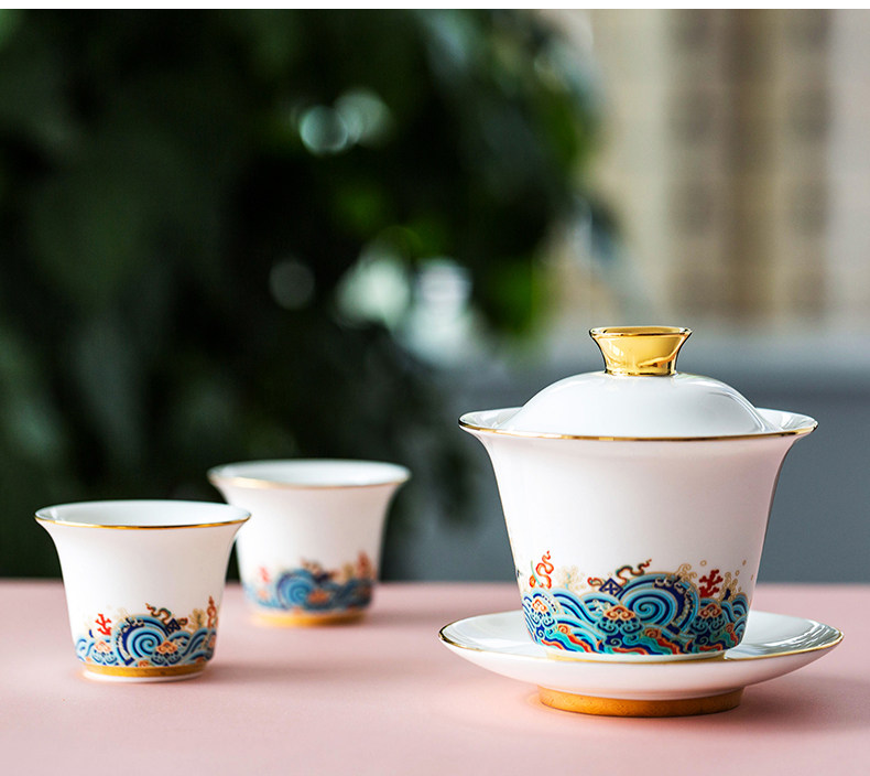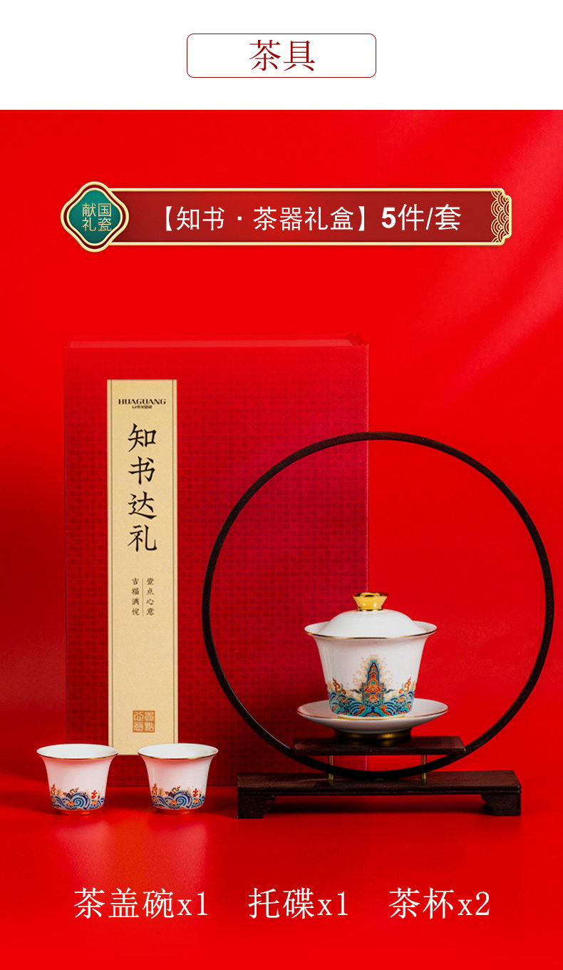 Huaguang National Porcelain Bone China Tableware Suit Bowl Dish Kung Fu Tea Set Teapot Lid Bowl Set Mid-Autumn Festival Gift Giving Box-Packed