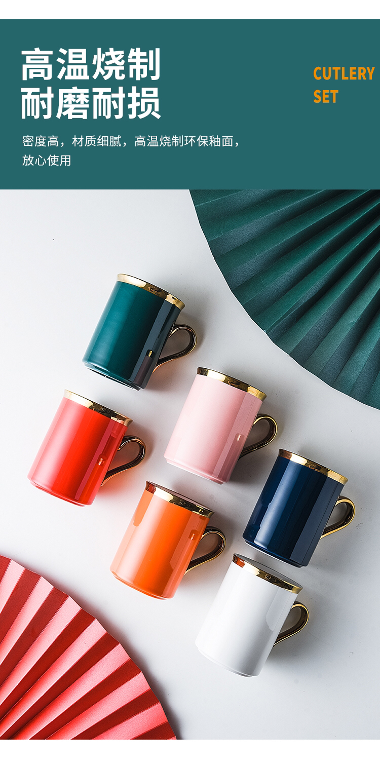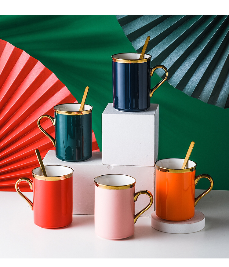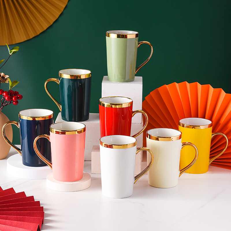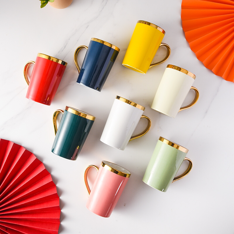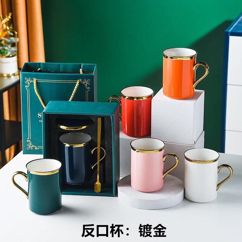 Hot Selling Creative Plating Golden Cup Mouth Ceramic Cup Simple Mug Office Water Glass Gift Box Packaging