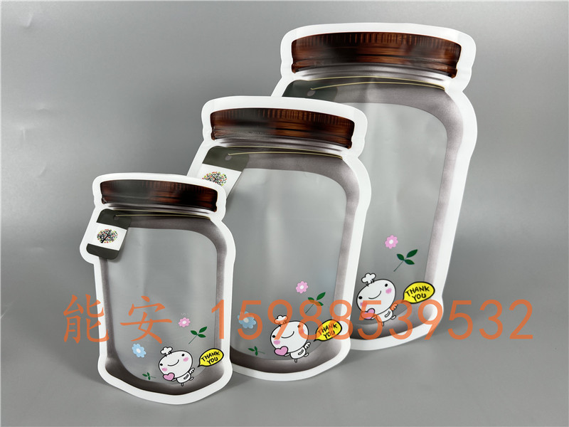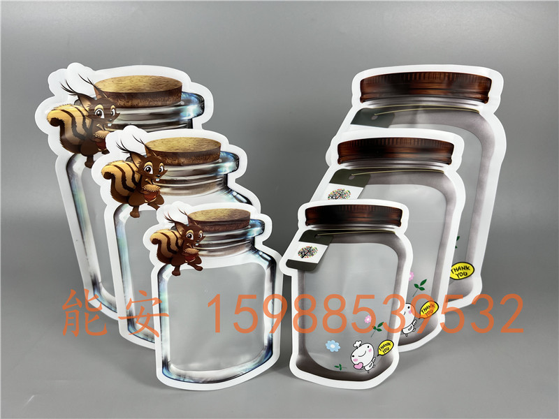 Spot Mason Bottle Plastic Bag Food Special-Shaped Independent Packaging and Self-Sealed Bag Zipper Packing Bag Customizable Logo