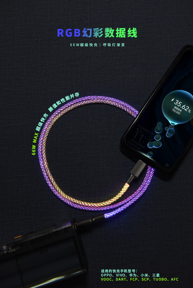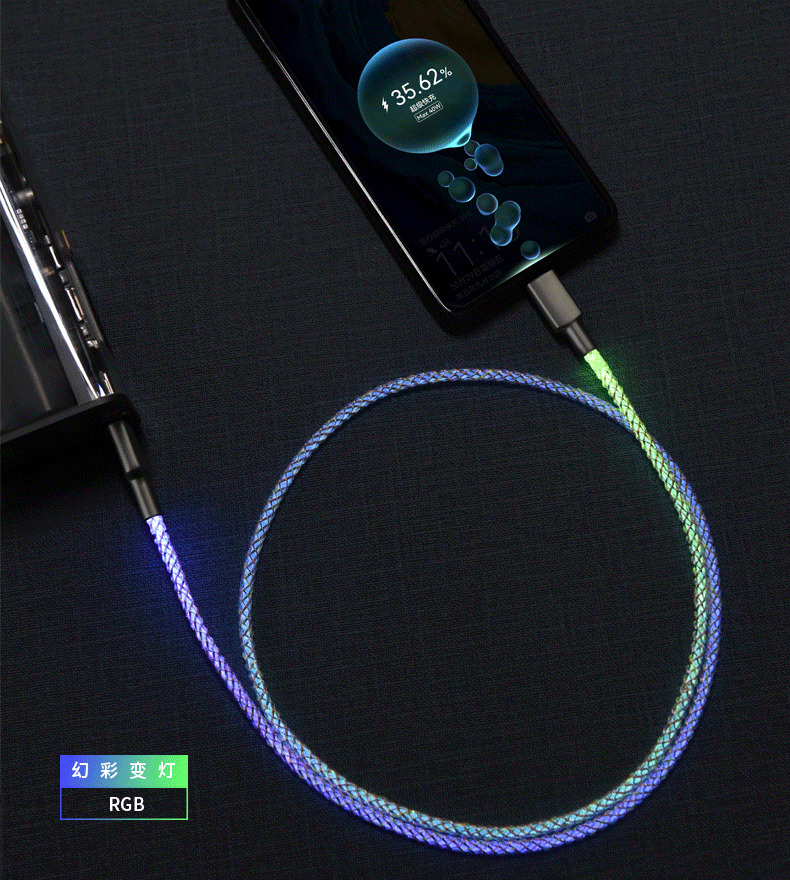 Illuminating Data Cable Support Data Transmission Super Fast Charge for Xiaomi Flash Charging Streamer 1M Charging Cable..