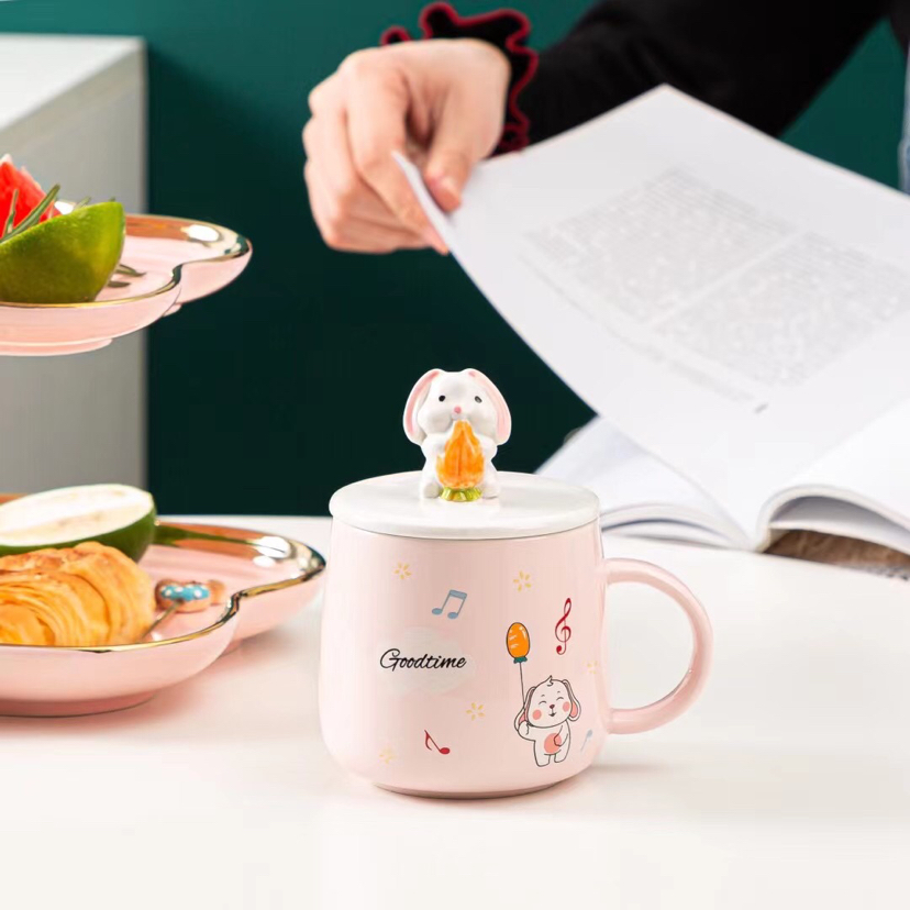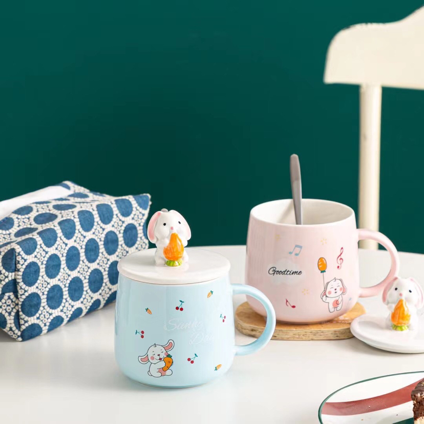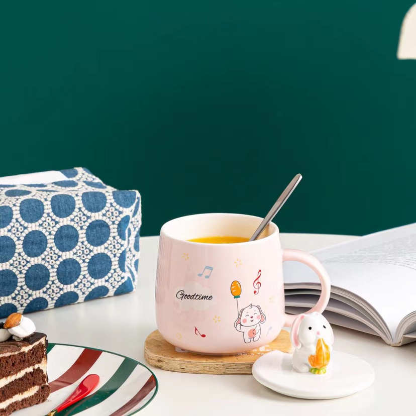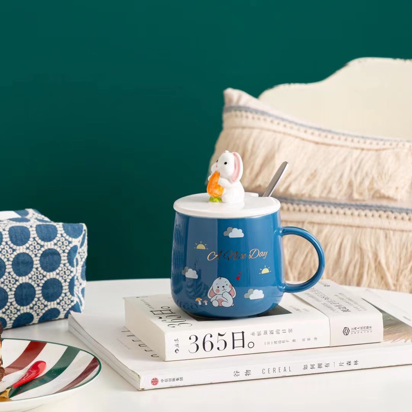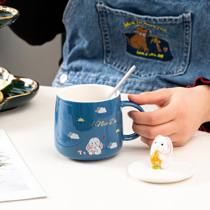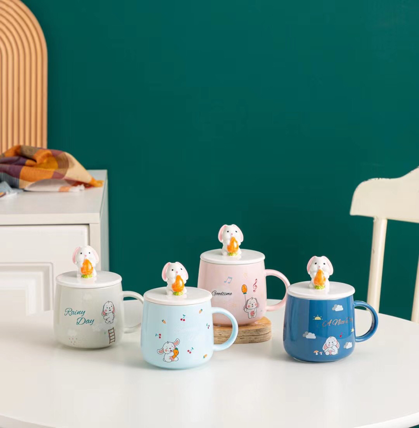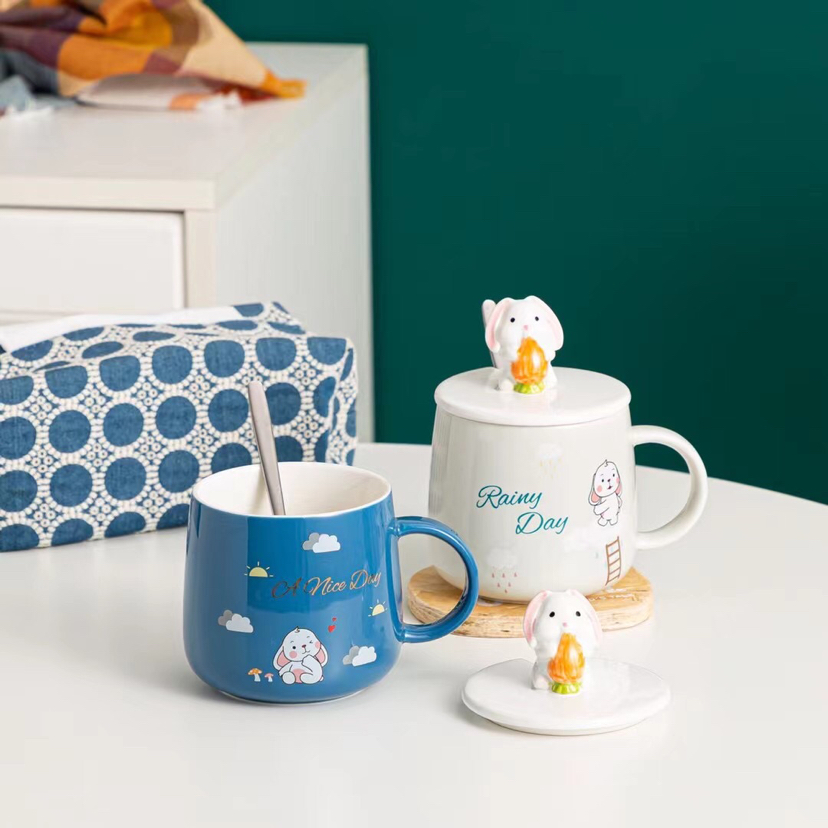 Hot Selling Cartoon Ceramic Cup Rabbit Mug with Cover with Spoon Coffee Cup Office Water Glass