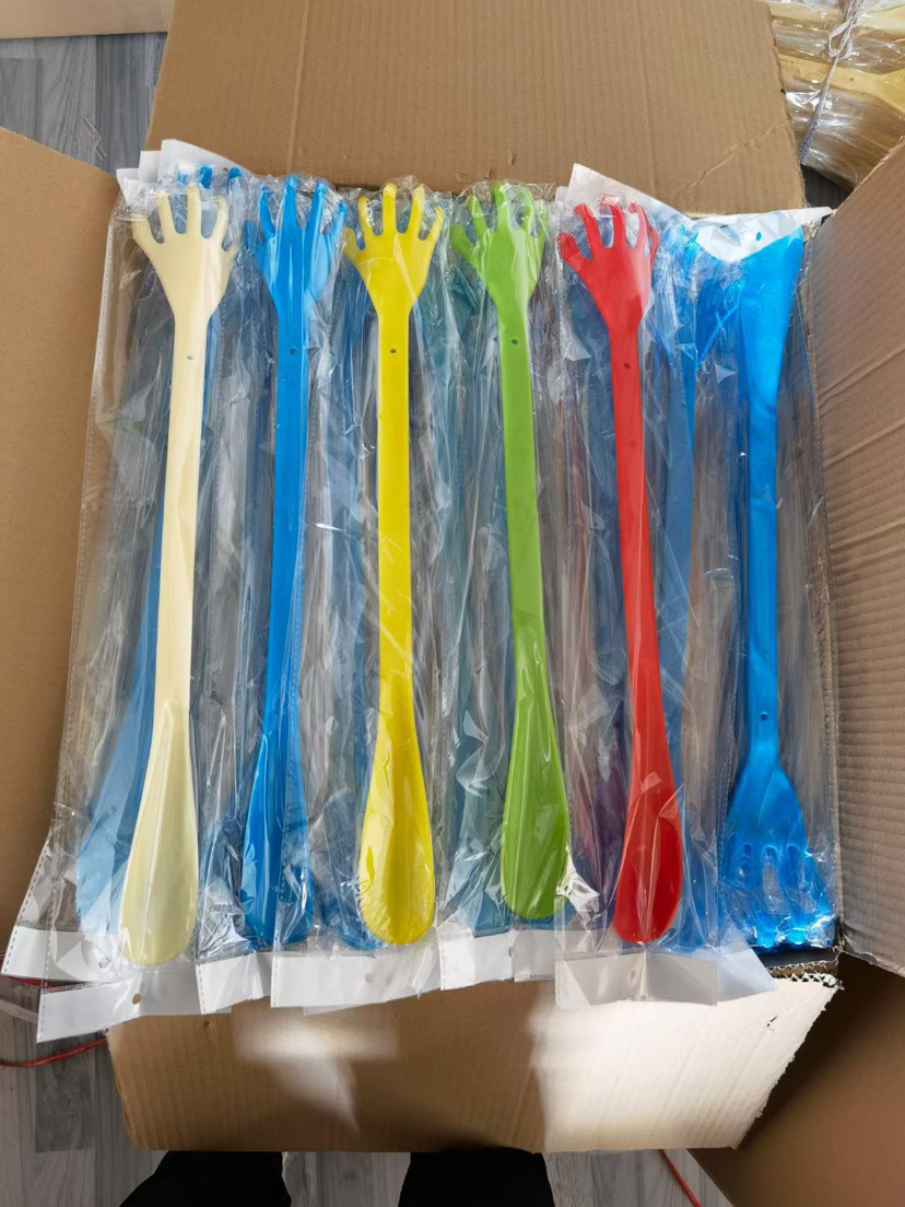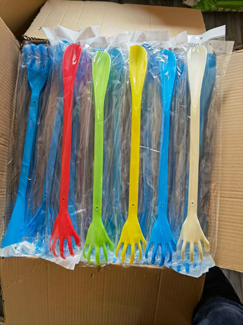 I don't ask anyone to add shoehorn for big hand scratching! Product Size height 50cm width 7.5cm! A gram weight of about 55! 300 pieces per piece! Mixed colors! The volume of a box is 50*48 * 36cbm! Weight 19kg