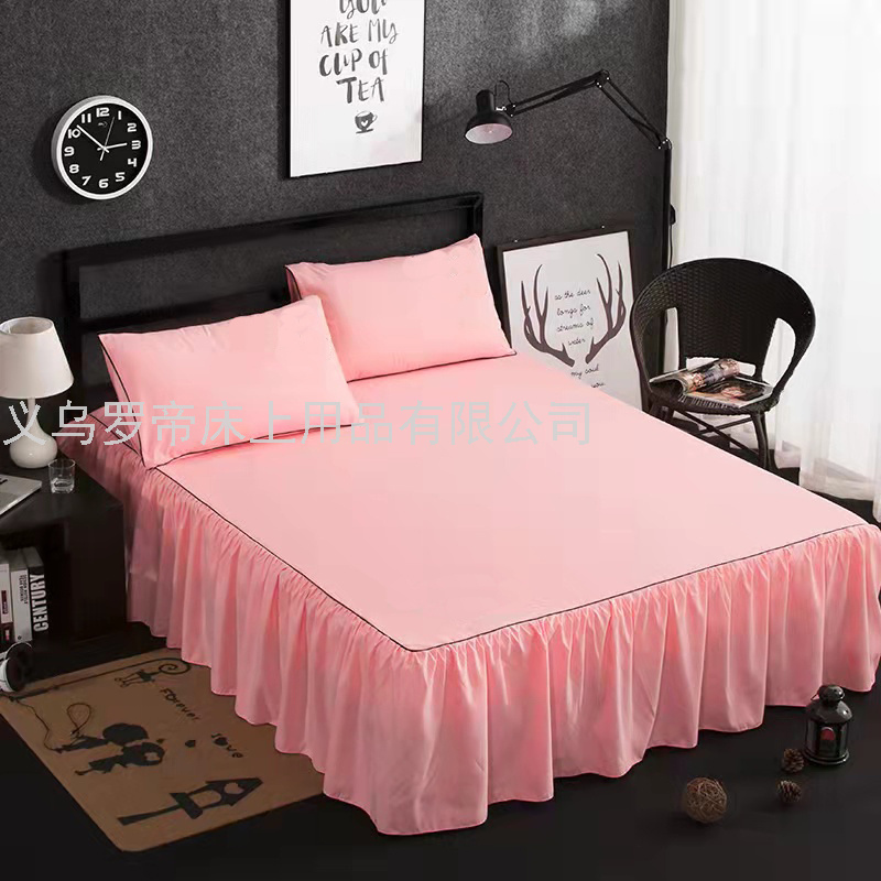 simple solid color sanding four-piece bedding bed sheet quilt cover fitted sheet cotton student dormitory three-piece set