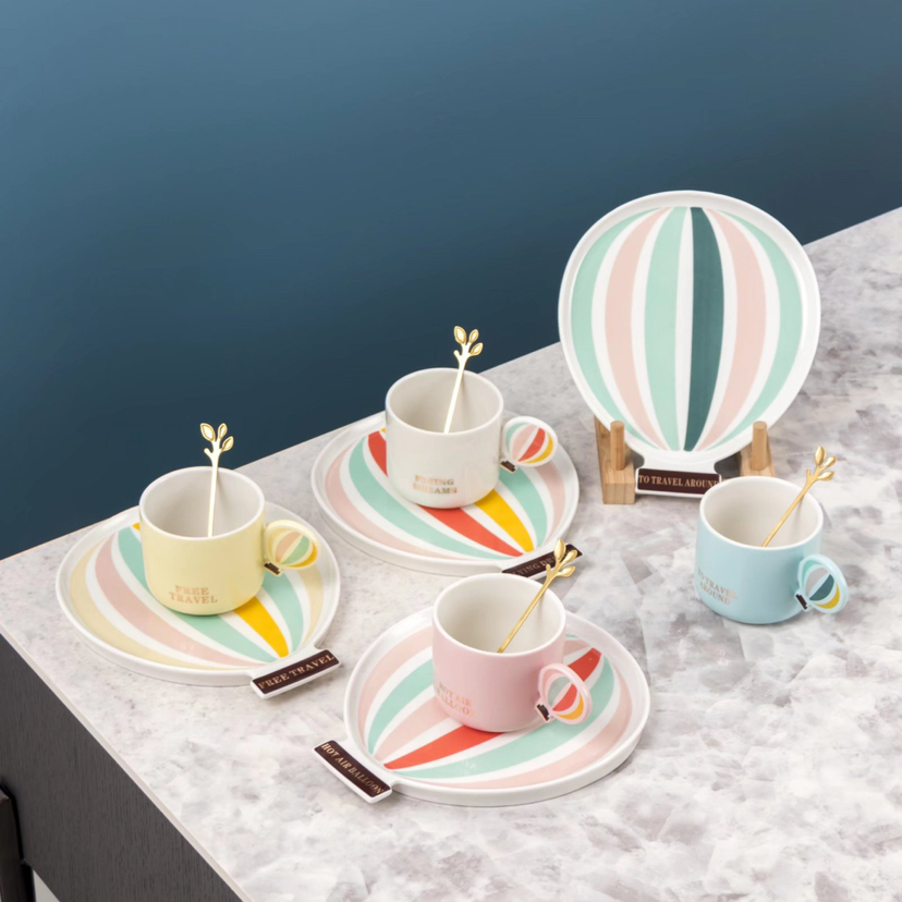 Creative Hot Air Balloon Ceramic Coffee Cup Set Mug Office Water Glass