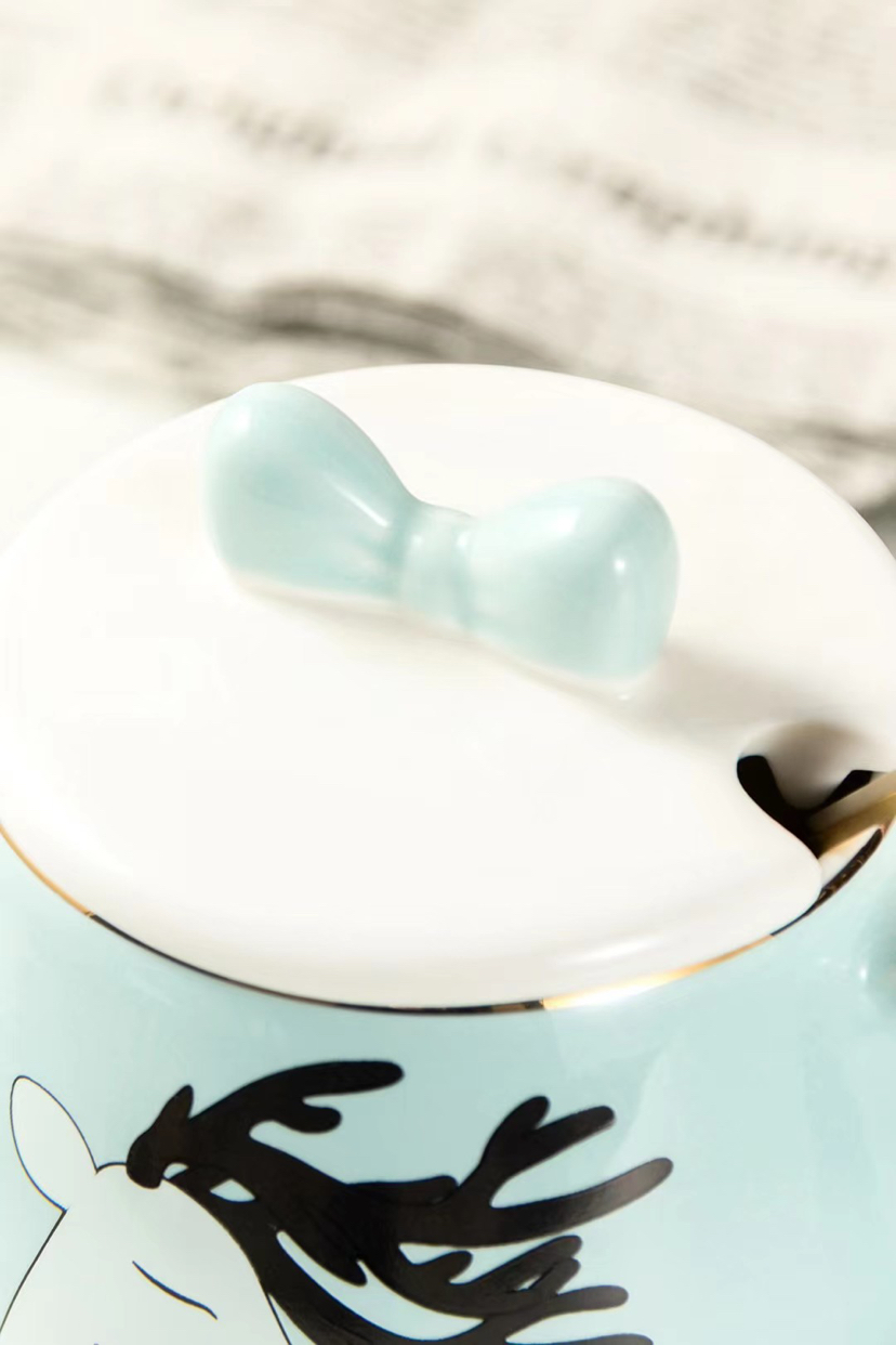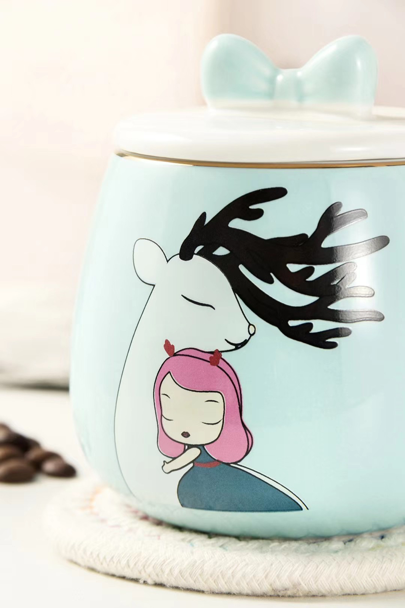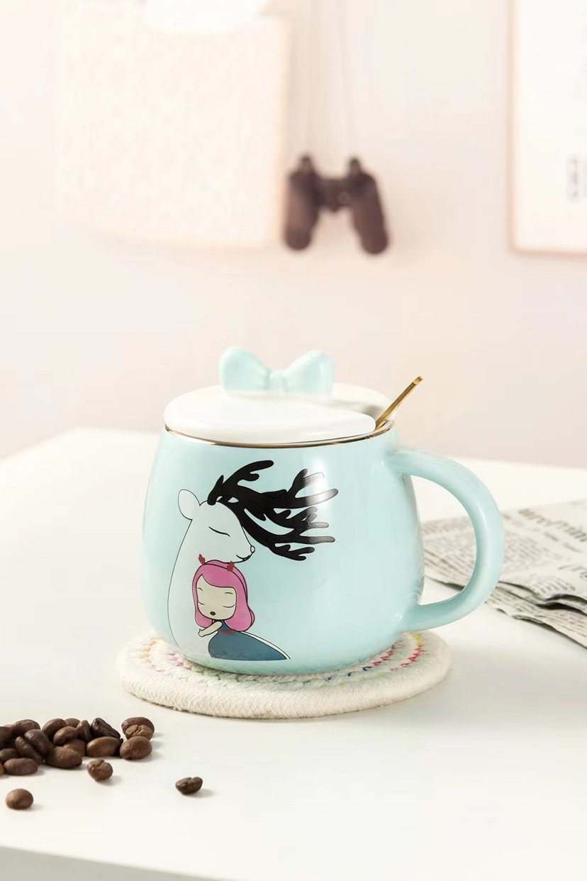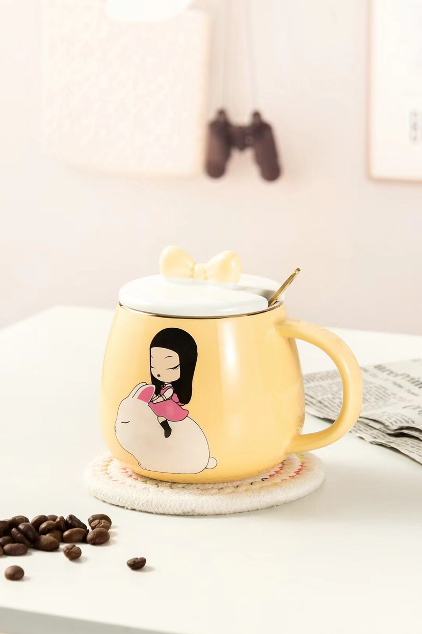Hot Selling Cartoon Ceramic Cup Adorable Girly Style Mug with Cover with Spoon Coffee Cup Office Water Glass