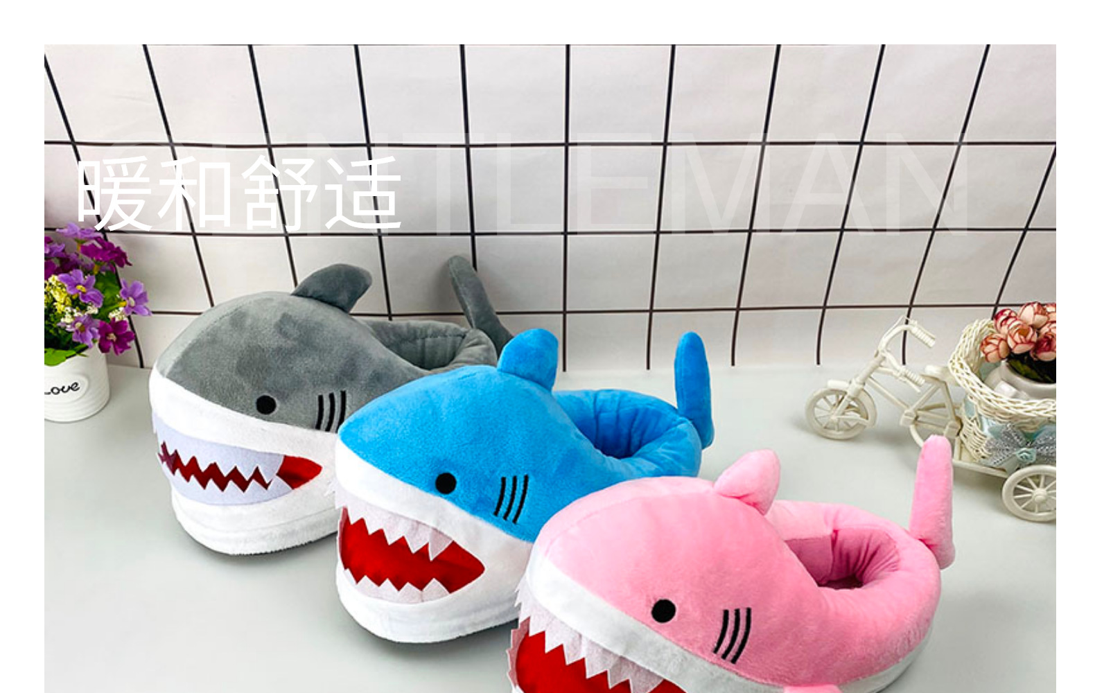 autumn and winter plush shark slippers cute shark all-inclusive soft platform dolphin warm home slippers