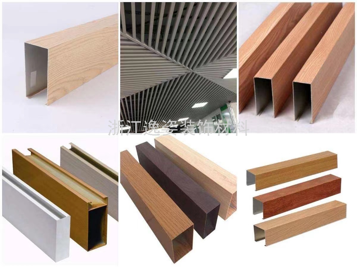 Factory Direct Sales Aluminum Rectangular Tube Ceiling Wood Grain Aluminum Profile U-Shaped Aluminum Ceiling Decorative Partition Material Ceiling Aluminum Rectangular Tube