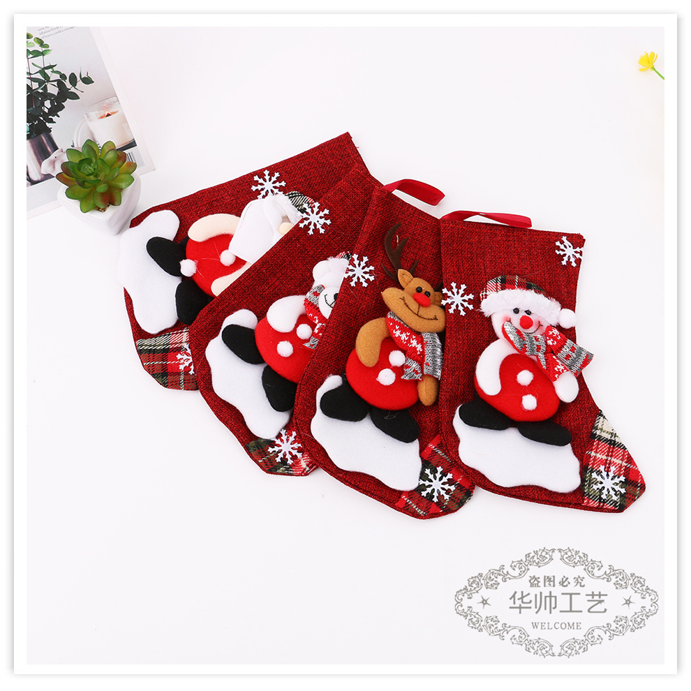 new cross-border medium linen christmas stockings christmas decorations christmas gift bag gift bag christmas hanging socks