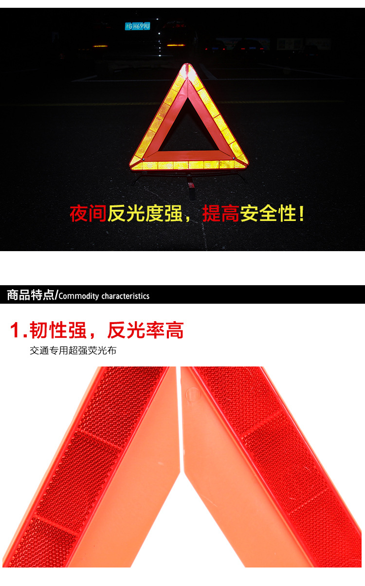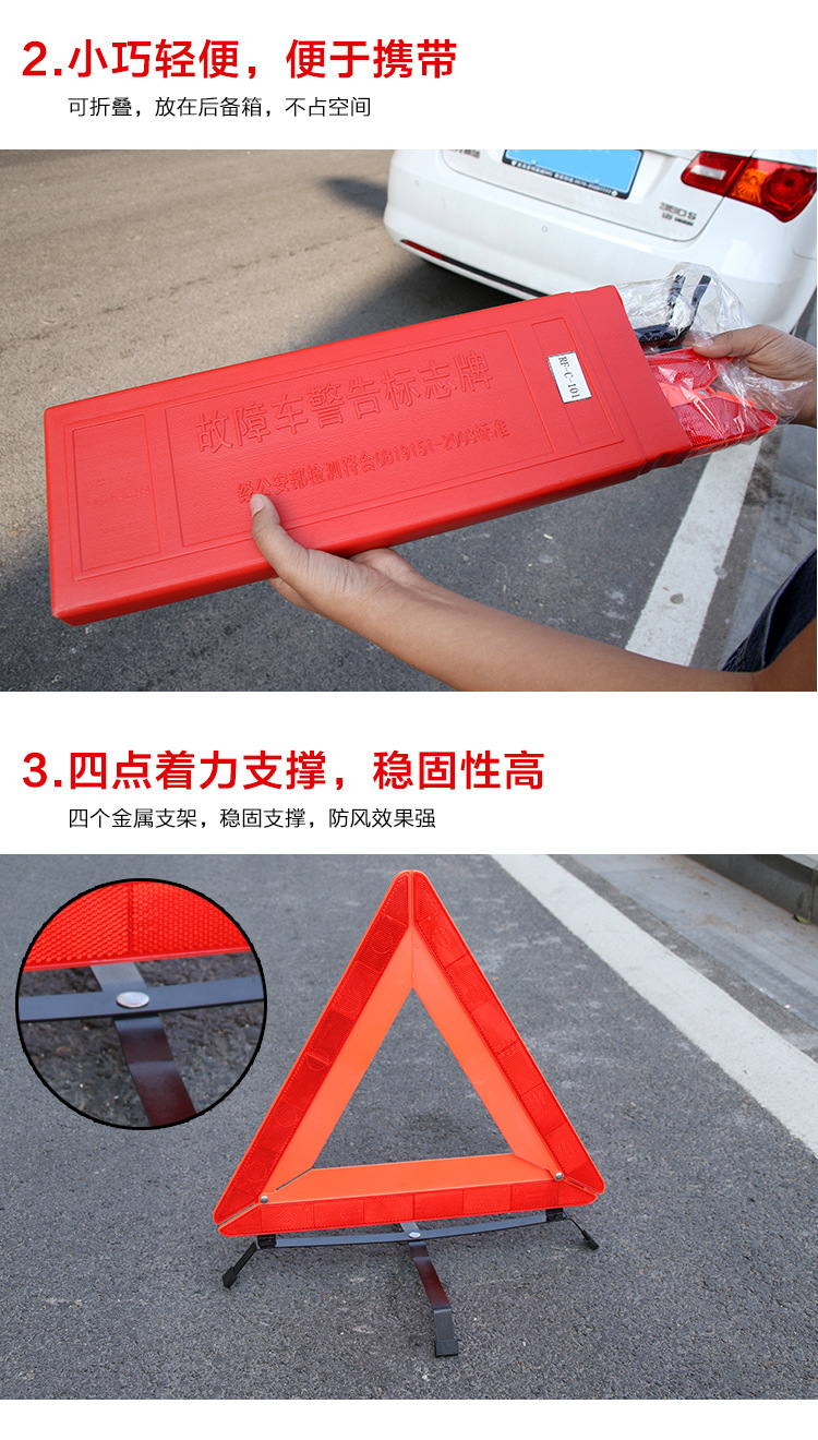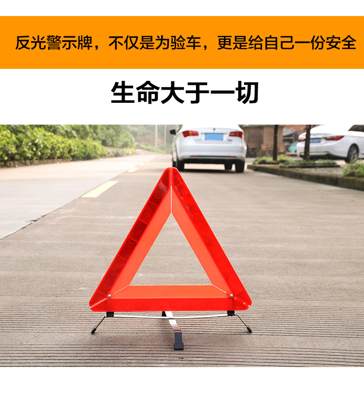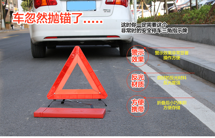 when the car is on the road, it is inevitable that it needs to stop at the roadside urgently. At this time, this thing is useful, no matter during the day, at night or when the weather is bad, as long as you put it in the distance of several meters behind the car, you can warn the vehicle driving from behind in advance. Because it is reflective, it is very bright and eye-catching when there is light warning sign at night, I saw it all the way. Folding reflective triangle warning signs can be folded together when not in use, which is convenient to carry. When in use, it can be opened and placed behind the car, which is a safety product for you to drive out.