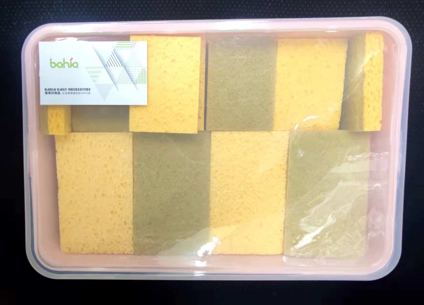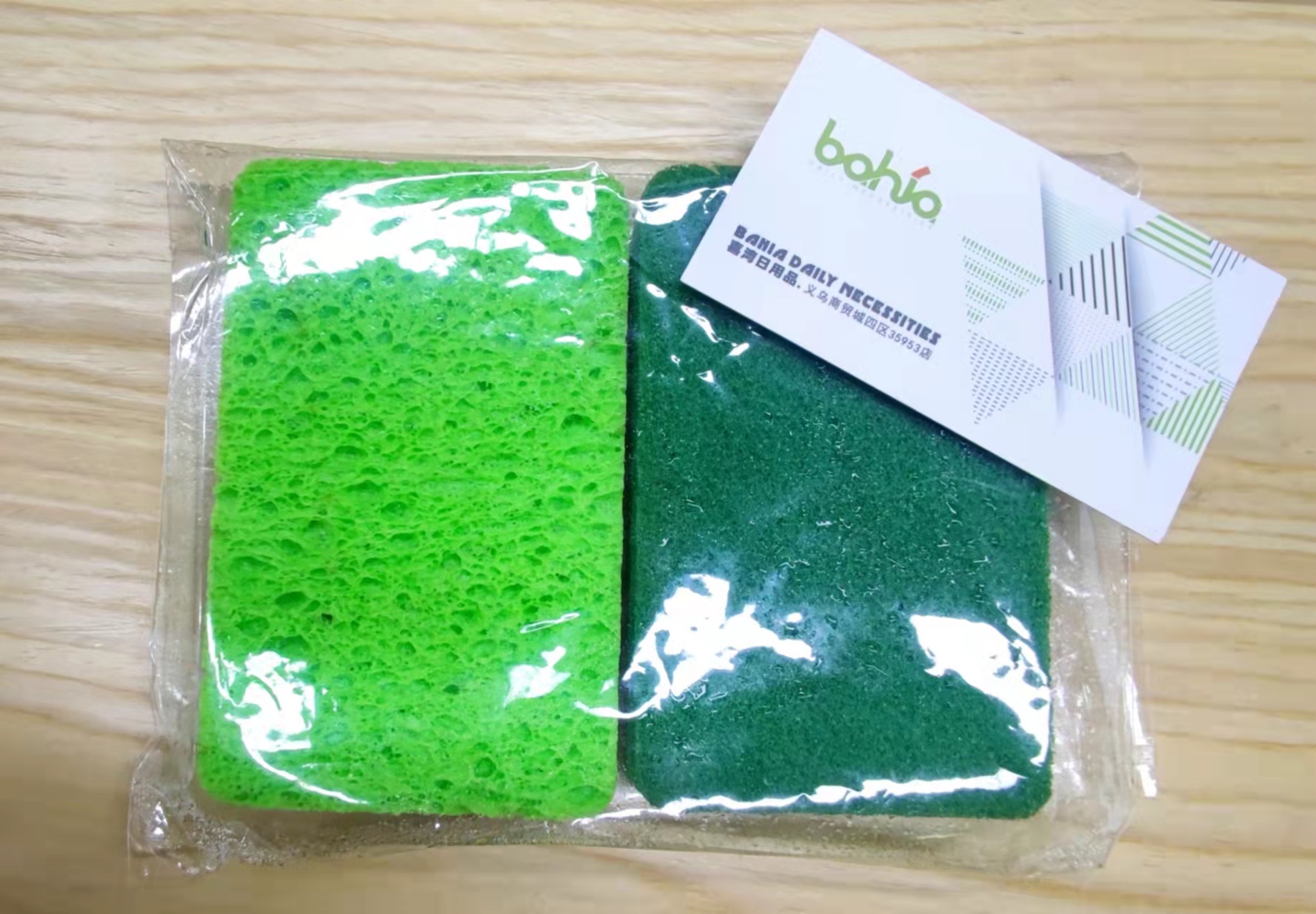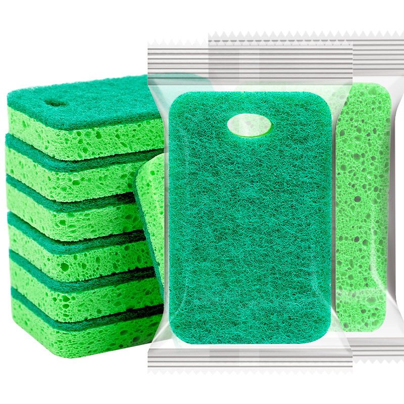 This product is made of sponge bonded with scrubbing cloth (polyester fiber). One side of the scrubbing cloth is rough, suitable for cleaning difficult to clean dirt, while the other side of the sponge is soft and does not damage or wear the surface of kitchen utensils. The combination of the sponge and the scrubbing cloth makes it easy to clean the bowls and chopsticks. The sponge scrubbing cloth also comes in many different qualities. High-density sponge has good tensile strength and elasticity, is durable, and when bonded with good scrubbing cloth (containing sand), it becomes a high-grade and practical product. General sponge is considered good if the density exceeds 22. Poor-quality sponge deforms and comes off after only two uses. Therefore, the products are divided into good and poor quality.