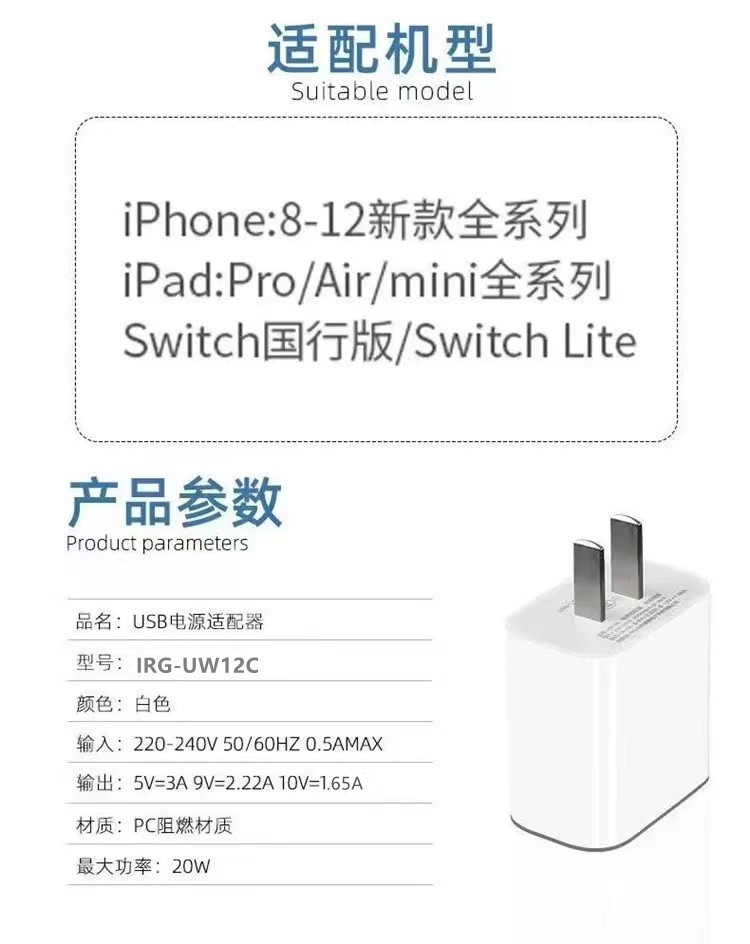 Pd20w Fast Charge Charger for Apple 13/12 Charger iPad Charging Plug Apple PD Fast Charge Set..
