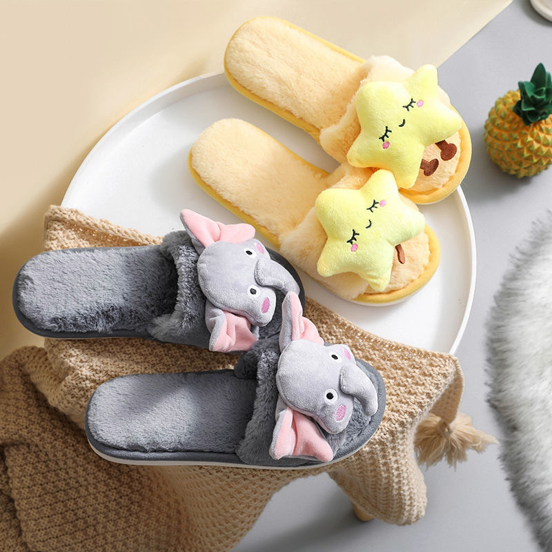 new cute cartoon elephant home floor cotton slippers jade hare velvet cute plush baby elephant cotton slippers outer wear.