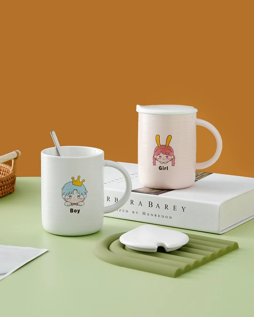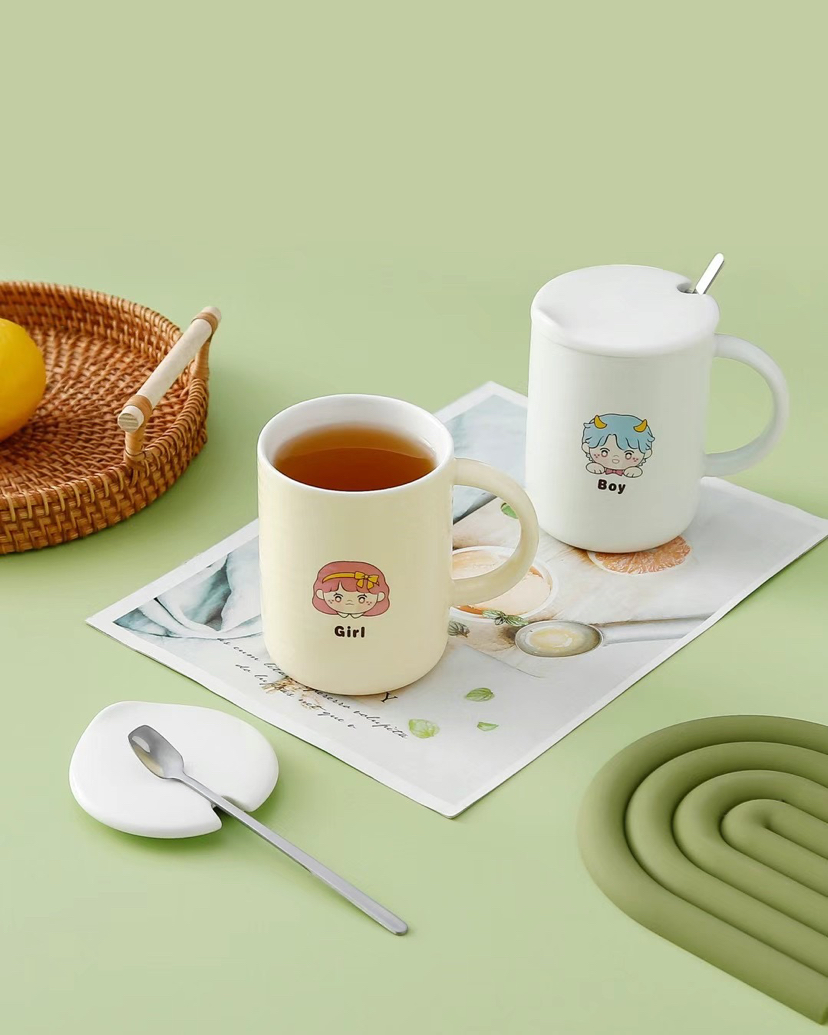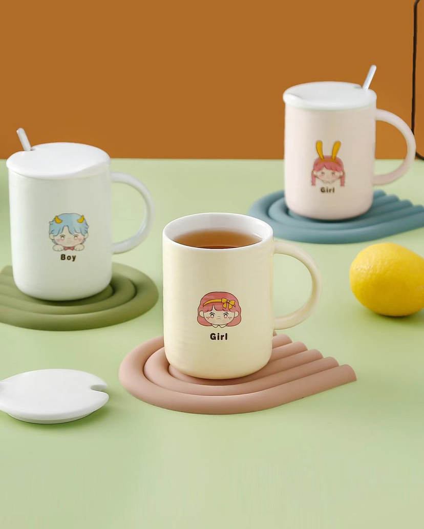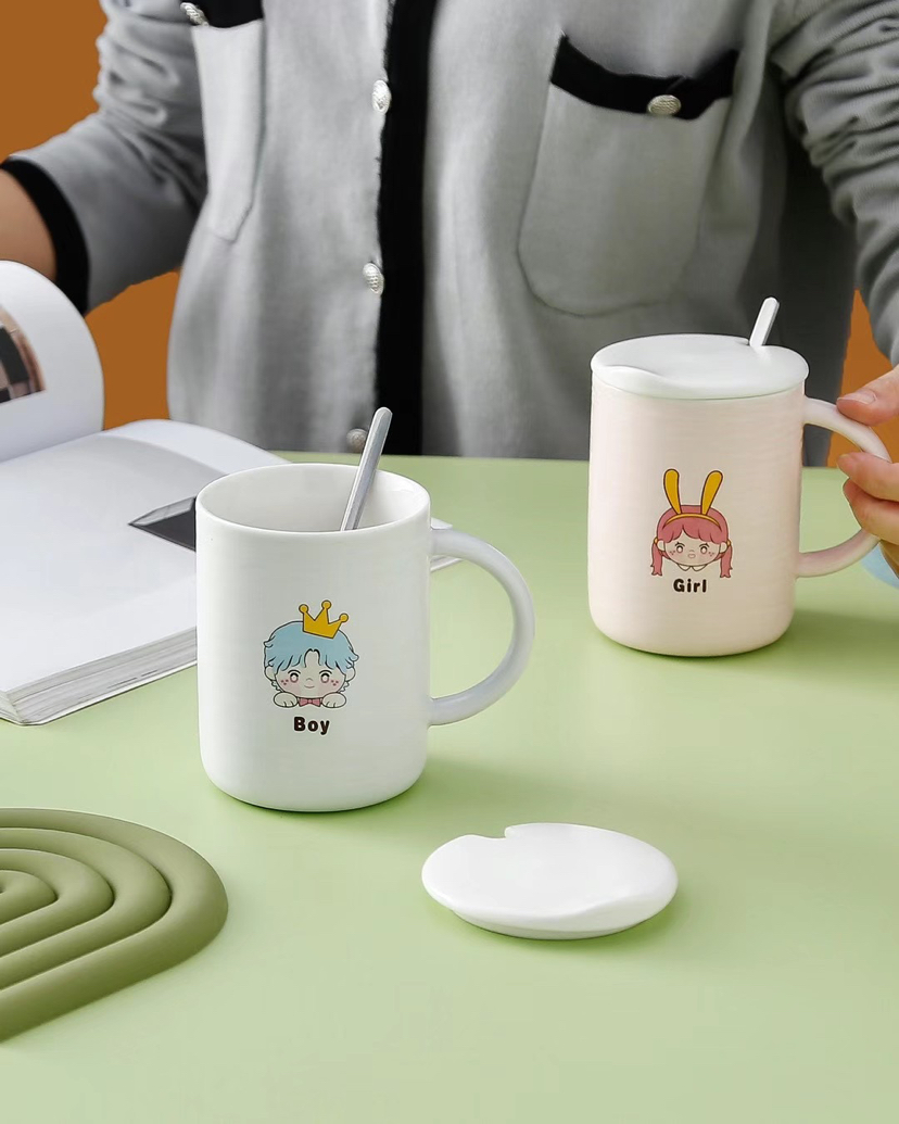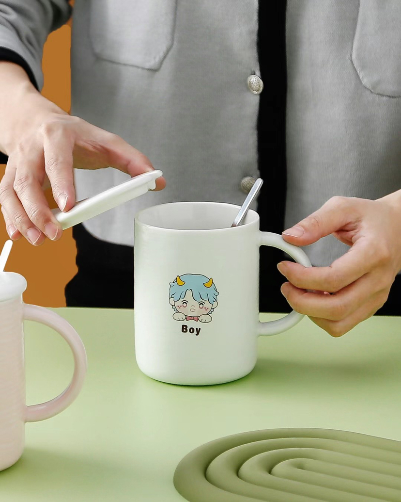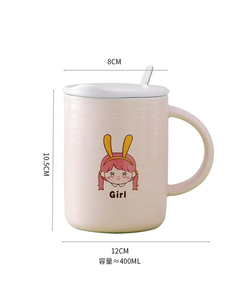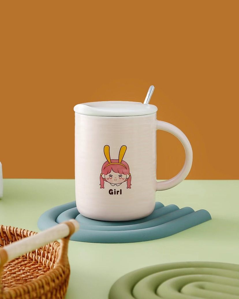 Hot Sale Fresh Ceramic Cup with Cover with Spoon Coffee Cup Cute Girl Drinking Glass Mug