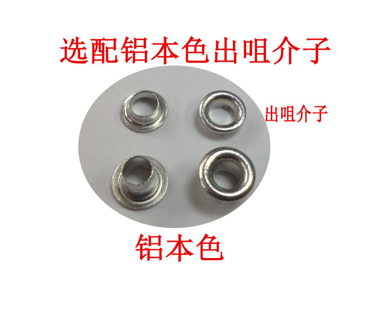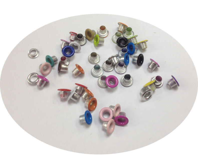 Manufacturers supply various specifications of aluminum, iron, copper eyelet, oblique edge eyelet, flat eyelet, special-shaped eyelet, pressed edge eyelet, large edge eyelet, eyelet with drill, eco-friendly eyelet, can pass the European and American environmental detection, foreign trade wholesale, global supply.