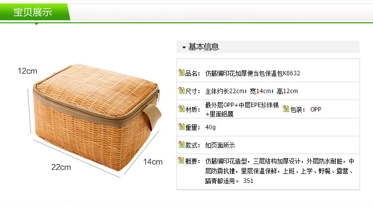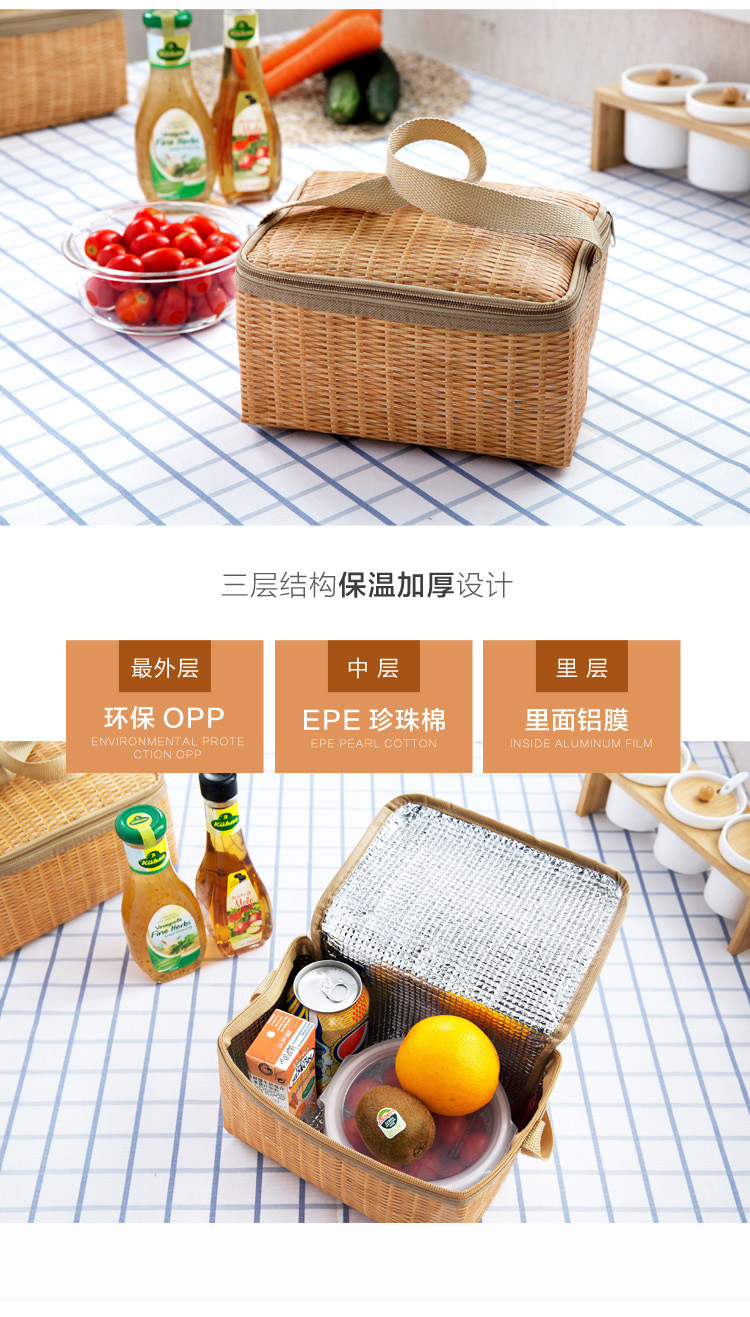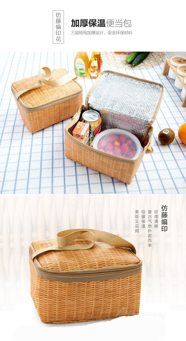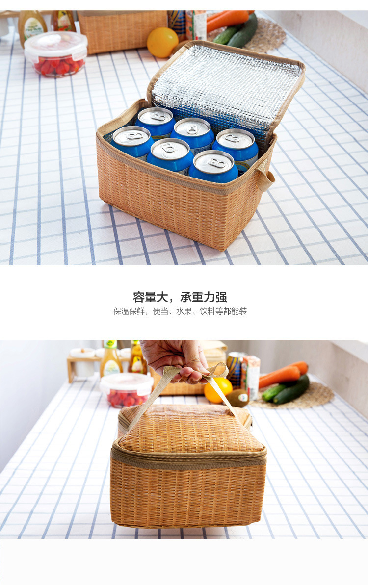 Outdoor thermal picnic basket Japanese garden style rattan-like lunch bag snack fruit storage portable outing basket