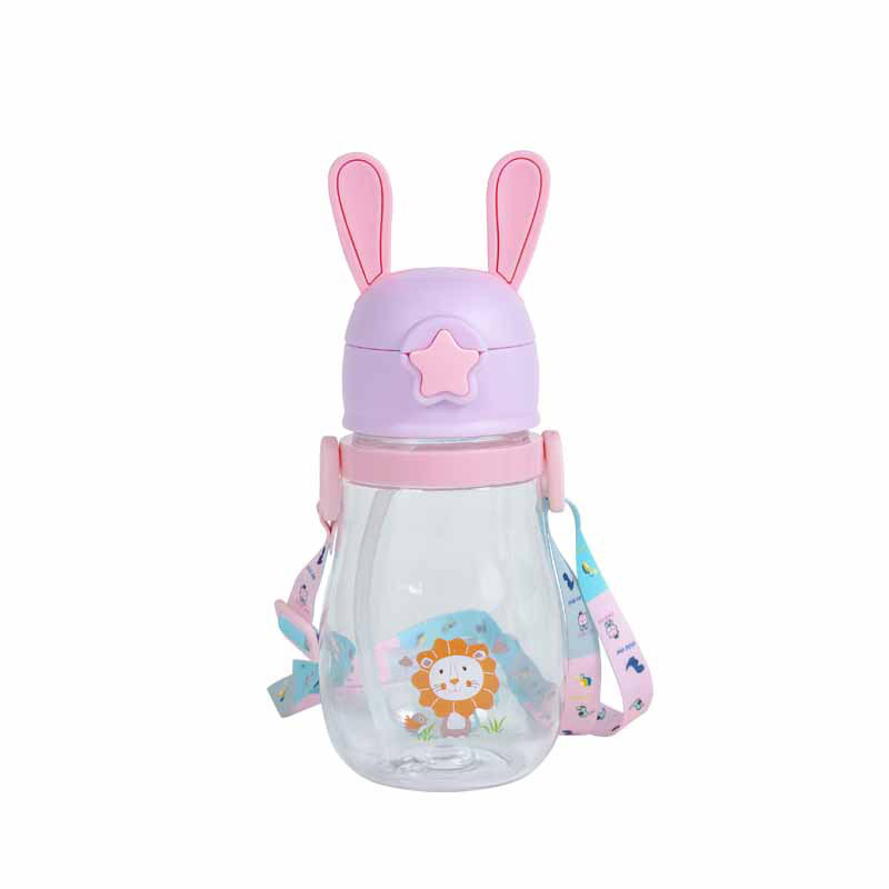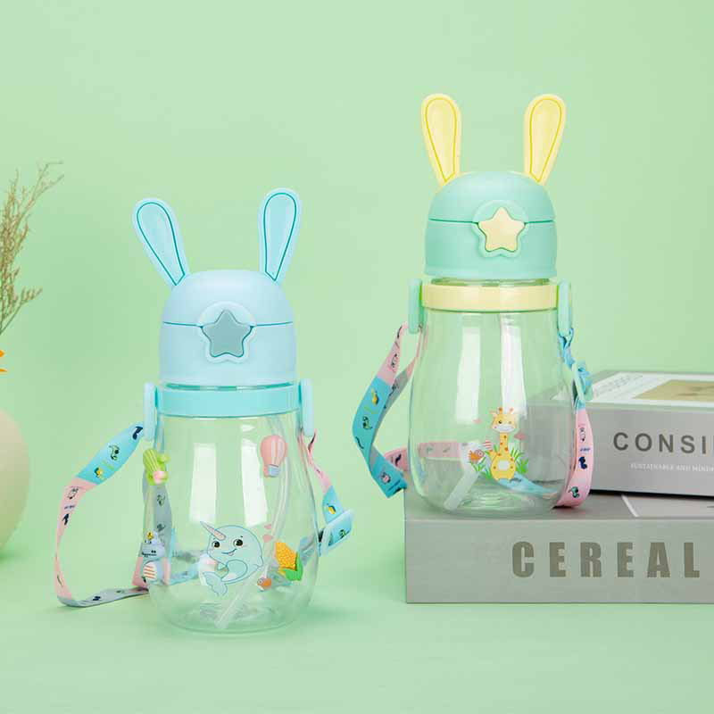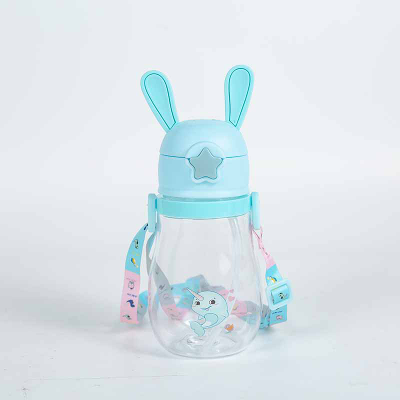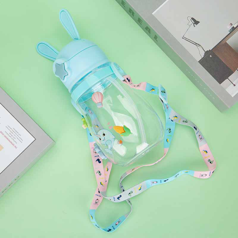 Cartoon Rabbit Ears Children's Shoulder Strap Crossbody Portable Drinking Cup Straw Cup Baby Kindergarten Spring Plastic Water Cup